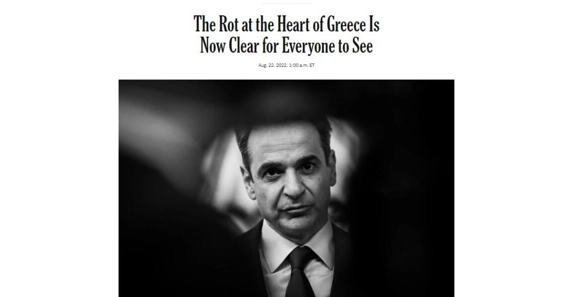 Δεν ξέρω τι κακό έχει βρει τους New York Times με τον πρωθυπουργό μας. Τη μία το ρεπορτάζ τον παρουσιάζει σαν να είναι χουντικός, την άλλη βγαίνουν με άρθρο «Η σήψη στην καρδιά της Ελλάδας». Σήψη, καλά διαβάσατε. Και δυσωδία.