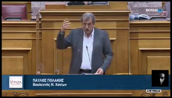 Σημεία από την ομιλία του Βουλευτή Χανίων του ΣΥΡΙΖΑ-Π.Σ. Παύλου Πολάκη στην ολομέλεια της Βουλής κατά τη συζήτηση της επίκαιρης ερώτησης του ΣΥΡΙΖΑ με θέμα: “Κομματισμός και αναξιοκρατία στην επιλογή των στελεχών της Δημόσιας Διοίκησης”.Ξεκινώντας την ομιλία του ο Π. Πολάκης παρέθεσε σειρά στοιχείων σχετικά με τα πεπραγμένα της κυβέρνησης Μητσοτάκης ΑΕ. Πιο συγκεκριμένα όπως τόνισε:• ο μέγιστος αριθμός των μετακλητών που είχε ο ΣΥΡΙΖΑ ήταν 2.650. Εσείς, πόσους έχετε σήμερα; Το απόλυτο ρεκόρ όλης της μεταπολίτευσης: 3.184• Επί ΣΥΡΙΖΑ οι μετακλητοί κόστιζαν το χρόνο σκάρτα 30 εκατομμύρια ευρώ, ενώ σήμερα απαιτούνται πάνω από 70 εκατομμύρια ευρώ.• Η προεδρία της κυβερνήσεως που υπαγόταν απευθείας στον πρωθυπουργό επί ΣΥΡΙΖΑ κόστιζε 4.900.000 ευρώ ενώ η αντίστοιχη σημερινή του Μητσοτάκη 16,5 εκατομμύρια ευρώ.“Έχετε φτιάξει ένα παρακράτος Μητσοτάκη στο Μαξίμου για να ελέγχετε με τοπικούς τοποτηρητές σε κάθε Υπουργείο, τη ροή του χρήματος των απευθείας αναθέσεων και των κλειστών διαγωνισμών. Αυτό είναι το επιτελικό κράτος σας με μια κουβέντα”.Σχετικά με τις διοικήσεις των νοσοκομείων ο Π. Πολάκης τόνισε:Αρχικά αλλάξατε όλες τις διοικήσεις, ορίζοντας συνταξιούχους τύπου Πατέρα, απόστρατους αστυνομικούς, δημοσιογράφους, ανθρώπους άσχετους με τα νοσοκομεία. Στη συνέχεια φέρατε νόμο για την αξιοκρατική επιλογή των στελεχών της δημόσιας διοίκησης και ενάμιση χρόνο τώρα τον έχετε βάλει στον πάγο. Και τώρα, ο κ. Πλεύρης βρήκε άλλο κόλπο: ορίζεται προσωρινός διοικητής, λέει. Αυτό τώρα είναι εφεύρεση του επιτελικού κράτους, του κράτους των αρίστων, έτσι;Στο νοσοκομείο της Καρδίτσας αναλαμβάνει με τον τρόπο αυτό η κ. Μαίρη Κουτσιούμπα, πτυχιούχος αρχαιολογίας του Πανεπιστημίου Βελιγραδίου της Ομοσπονδιακής Δημοκρατίας της Γιουγκοσλαβίας, με πολύ καλή γνώση ξένης γλώσσας και περισσότερα από πέντε χρόνια εργασιακής εμπειρίας. Δεν ξέρει γρι από νοσοκομεία, με λίγα λόγια, και γίνεται προσωρινή διοικήτρια στην Καρδίτσα. Η μάλλον η σχέση της με το χώρο της υγείας είναι ότι ο σύζυγός της είναι αποσπασμένος στο γραφείο του κ. Πλεύρη.Στο νοσοκομείο της Κύμης, αναπληρώτρια διοικήτρια διορίζεται μια τριαντάχρονη δικηγόρος η οποία καμία σχέση δεν έχει με το χώρο της υγείας και μπαίνει προσωρινή διοικήτρια με μοναδικό προσόν ότι είναι άμεσα συνδεδεμένη με τον κ. Κεδίκογλου.Καταλήγοντας ο Π. Πολάκης σημείωσε ότι: Η Αριστερά θα ξαναέρθει στην κυβέρνηση και θα διαλύσει το πελατειακό κράτος της Μητσοτάκης ΑΕ με νέα νομοθέτηση αξιοκρατίας, με νέα νομοθέτηση ισονομίας, με νέα νομοθέτηση που θα επιτρέψει να γυρίσουν τα παιδιά μας απέξω για να βρουν δουλειά σε μια Ελλάδα που θα αναπτύσσεται και όχι σε ένα ιδιωτικό κράτος που ταΐζει άχρηστα golden boys.