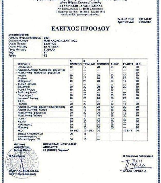ΥΓ. όχι από ματαιοδοξία αλλά για να στερήσω από κάποιους το γελοίο επιχείρημα πως «απλά θέλω να χάσω μαθήματα» , παραθέτω τους βαθμούς μου…