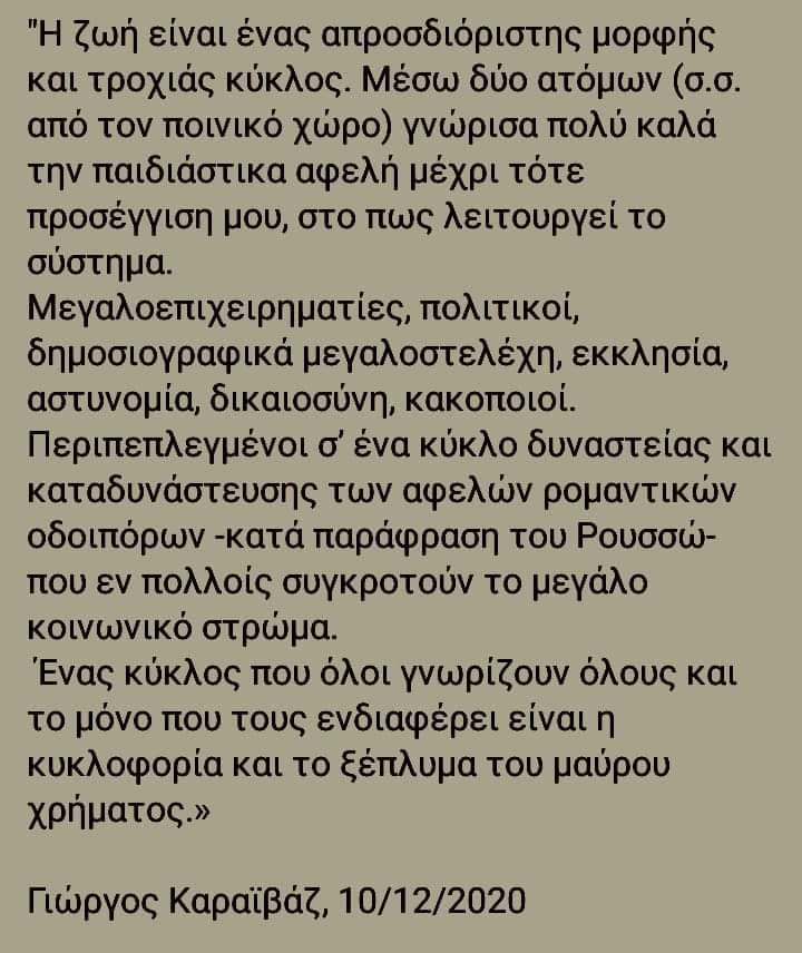 Σχεδόν κάθε μέρα, διαβάζω και ξαναδιαβάζω τι έγραψε εκείνος ο Κααραϊβαζ λίγες μέρες πριν τον “φάνε”. Δύο τα ερωτήματα που με τριβελίζουν: