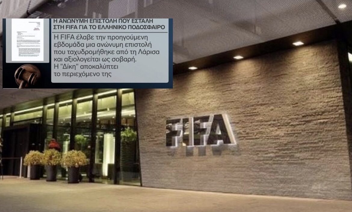Η FIFA έλαβε την προηγούμενη εβδομάδα ανώνυμη επιστολή που ταχυδρομήθηκε από την Λάρισα και αξιολογείται ως σοβαρή. Η «Δίκη» αποκάλυψε το περιεχόμενο της επιστολής, που ισχυρίζονται ότι συνέταξαν πέντε εν ενεργεία και βετεράνοι ποδοσφαιριστές, τρεις παλαίμαχοι διαιτητές και δύο εν ενεργεία προπονητές.