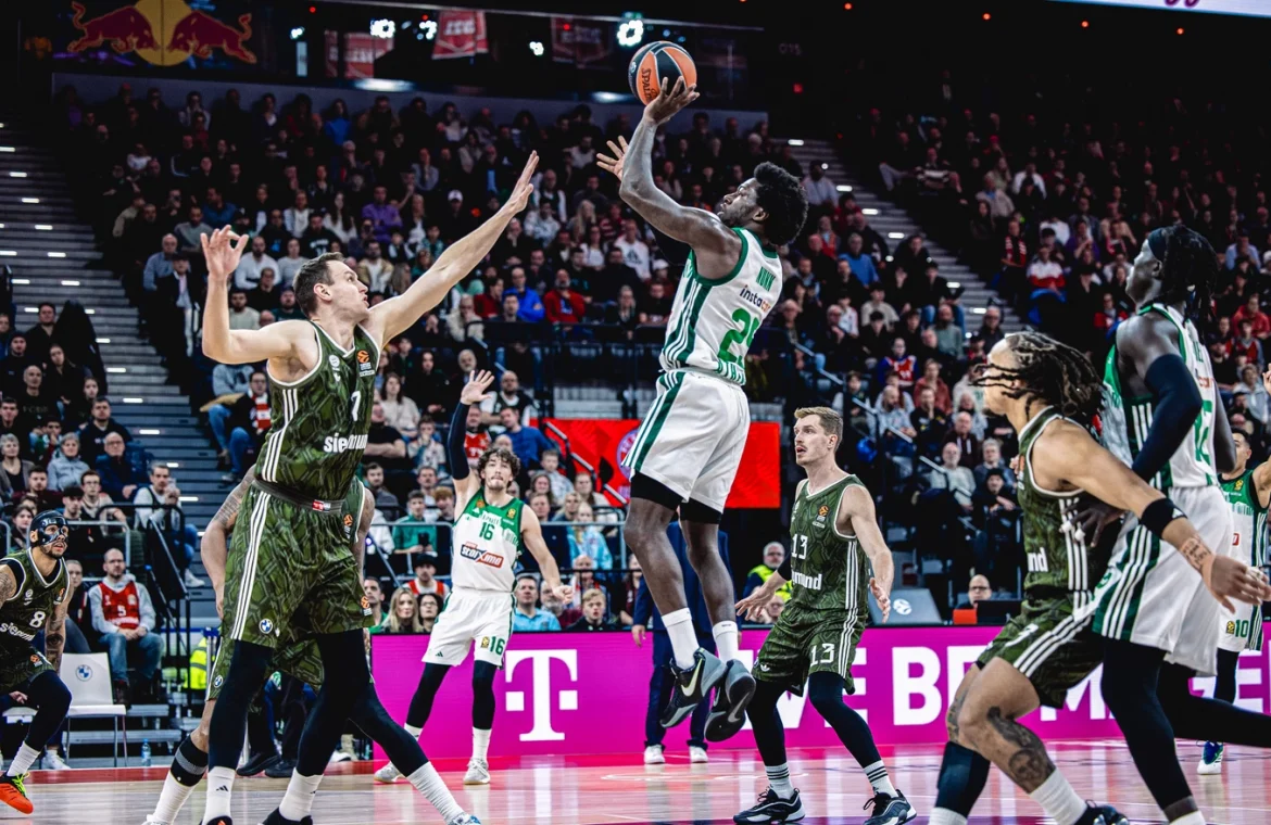 Με τον Παναθηναϊκό να παίρνει… φωτιά από τα 6,75 στο κρισιμότερο σημείο και την άμυνα να κρατάει την κορυφαία επίθεση της εφετινής Euroleague στους 69 πόντους, οι πρωταθλητές Ευρώπης πανηγύρισαν στο Μόναχο την τρίτη διαδοχική νίκη τους και υποχρέωσαν την Μπάγερν στην πρώτη εντός έδρας ήττα της, σε ακόμη ένα μπασκετικό έπος του «τριφυλλιού». Η ομάδα του Εργκίν Αταμάν επικράτησε με 80-69 των Βαυαρών, για την 18η αγωνιστική της κορυφαίας ευρωπαϊκής διασυλλογικής διοργάνωσης, βελτιώνοντας το ρεκόρ της σε 11-7 και πιάνοντας τη γερμανική ομάδα στην κατάταξη.