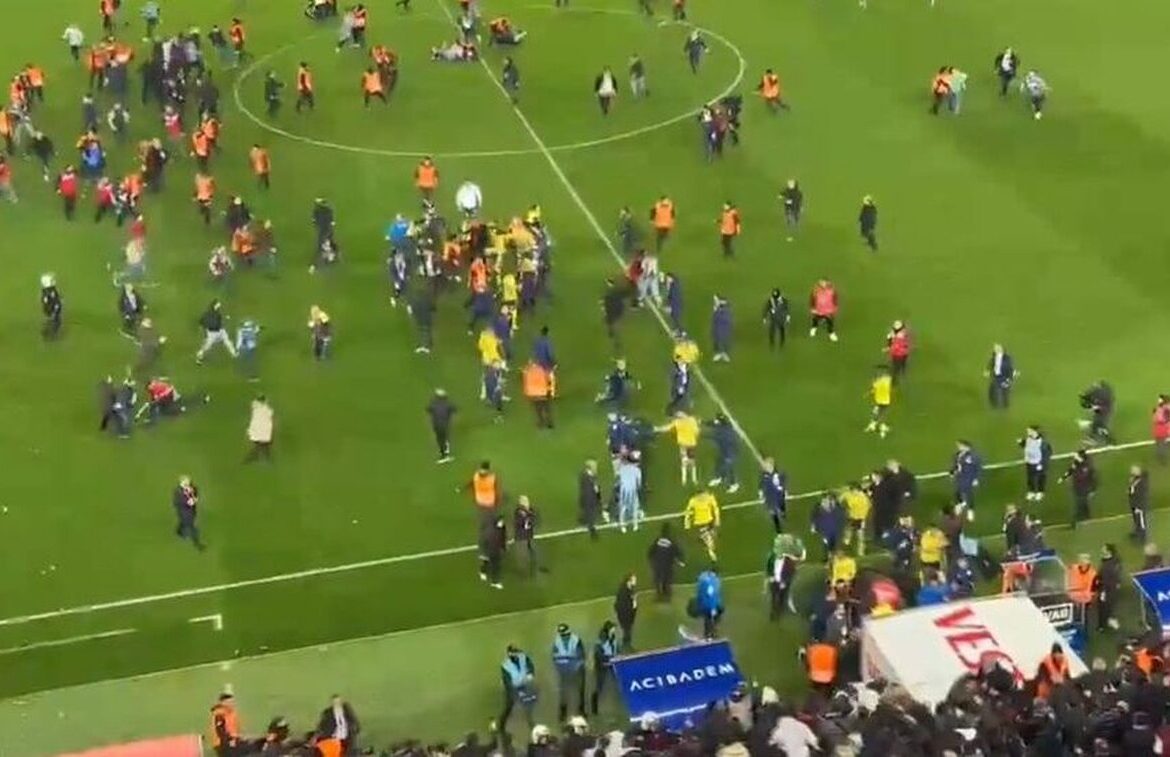 Ακουλούθησε χάος με εισβολή εκατοντάδων οπαδών στον αγωνιστικό χώρο και ξύλο ανάμεσα σε αυτούς και τους παίκτες της Φενέρ, πριν αποχωρήσουν για τα αποδυτήρια.