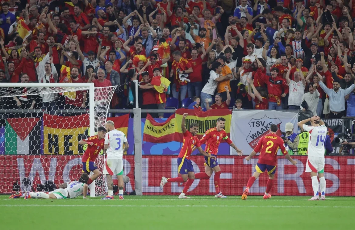 Με αυτογκόλ του Καλαφιόρι η Ισπανία που ήταν ανώτερη από την αρχή ως το τέλος νίκησε με 1-0 την κακή Ιταλία και εξασφάλισε την πρόκριση στους «16» του Euro 2024, ενώ η πρωταθλήτρια Ευρώπης θα παίξει «τελικό» πρόκρισης με την Κροατία την 3η αγωνιστική.