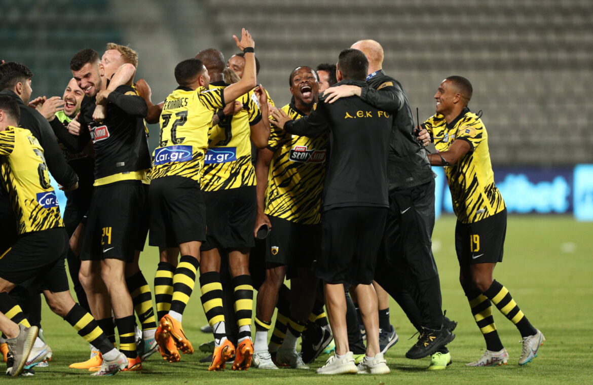 Δέκα μέρες μετά την κατάκτηση του πρωταθλήματος, η ΑΕΚ επικράτησε με 2-0 του ΠΑΟΚ στο “Πανθεσσαλικό”, παρά το γεγονός ότι έπαιζε… όλο το ματς με παίκτη λιγότερο. Κάπως έτσι κατέκτησε το Κύπελλο Ελλάδας και ολοκλήρωσε το νταμπλ.