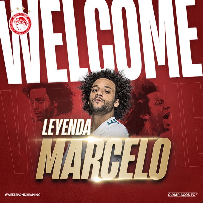 Η ΠΑΕ Ολυμπιακός ανακοινώνει την απόκτηση ενός θρύλου του ποδοσφαίρου, του Μαρσέλο, που θα φορά την ερυθρόλευκη φανέλα.