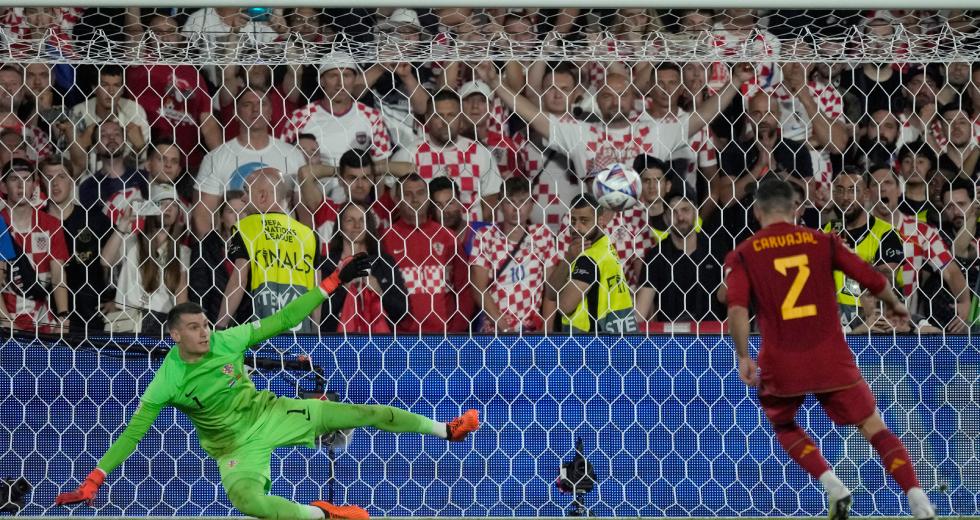 Η «ρώσικη ρουλέτα» ξεκίνησε με έξι εύστοχες εκτελέσεις, πριν ο Ουνάι Σιμόν αποκρούσει με το πόδι το σουτ του Μαγέρ. Ο Ασένσιο ευστόχησε και η Ισπανία βρέθηκε «αγκαλιά» με τον τρόπαιο, παρά την ισοφάριση (4-4) από τον Πέρισιτς. Ο Λαπόρτ όμως έστειλε τη μπάλα στο οριζόντιο δοκάρι και έδωσε παράταση στην αγωνία. Ο Σιμόν δήλωσε ξανά «παρών», νικώντας τον Πέτκοβιτς, και ο Ντάνι Καρβαχάλ με τρομερή ψυχραιμία «έσκαψε» τη μπάλα και χάρισε στη «ρόχα» το τρόπαιο, σπάζοντας και την… κατάρα των πέναλτι για την ομάδα του, που είχε αποκλειστεί με αυτό τον τρόπο στα δύο τελευταία Μουντιάλ, αλλά και στο τελευταίο EURO.