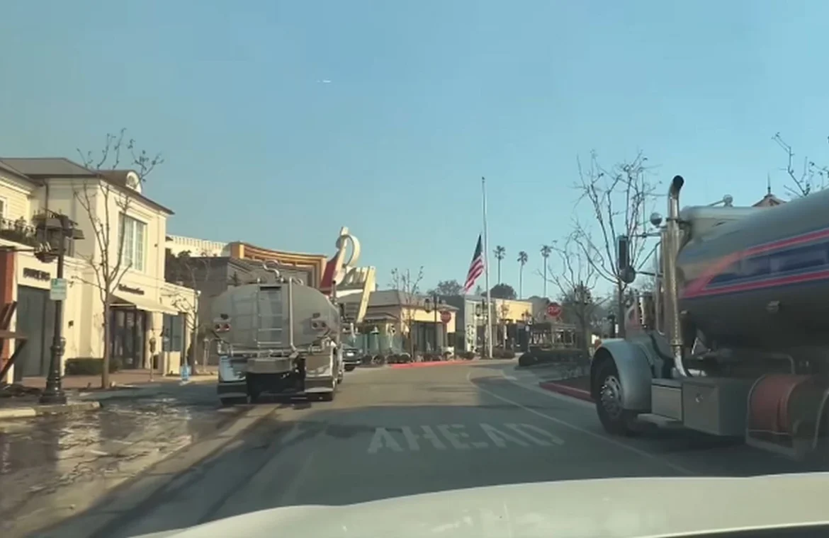 «Ελπίζω πραγματικά να έφεραν το δικό τους νερό», λέει ένας Καλιφορνέζος δίπλα στα αποκαΐδια του Πασίφικ Πάλισεϊντς. «Θα είναι πολύ ενδιαφέρον να μάθουμε αν χρησιμοποίησαν τους (δημόσιους) πυροσβεστικούς κρουνούς»…