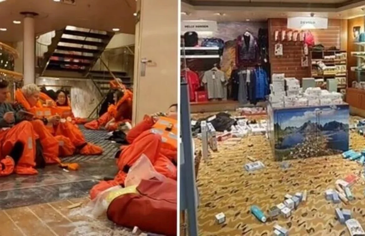 «Ακόμη και σε στιγμές καθαρού φόβου, οι συνεπιβάτες μας αιφνιδιάστηκαν από την καταστροφή της Gingerbread Town που κατέρρευσε, κατακερματίστηκε και γλίστρησε γύρω μας στο Muster Station A Deck 5 18.19 21.12.23 #Hurtigruten #MSMaud ενώ η #StormPia έκανε χαμό γύρω μας» Ο χρήστης X Oscar Dog έγραψε.
