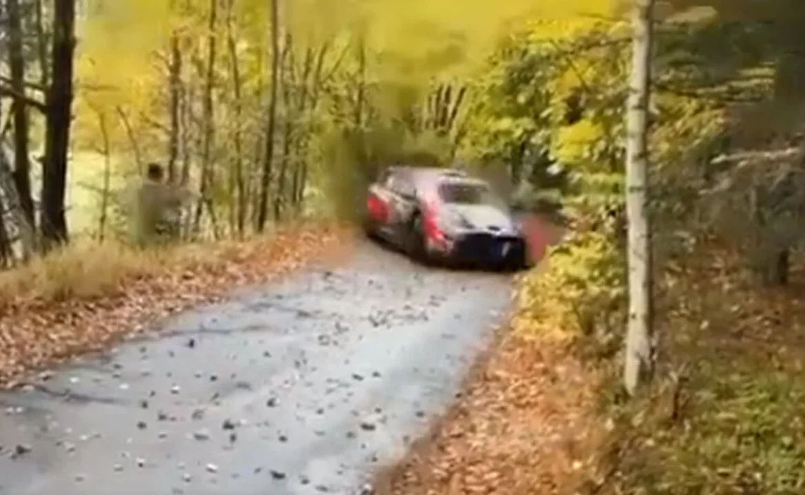 Φύλακα άγγελο είχαν οι θεατές της 5ης Ειδικής Διαδρομής του Ράλι Κεντρικής Ευρώπης, όπου προηγείται ο Φινλανδός Κάλε Ροβάνπερα. Ο συμπατριώτης του Ροβάνπερα, Εσαπέκα Λάπι, γλίστρησε με το Hyundai του στη βρεγμένη άσφαλτο και χτύπησε αρχικά με το πίσω δεξιό και στη συνέχεια με το εμπρός αριστερό μέρος του αυτοκινήτου στα δέντρα, περνώντας ξυστά ανάμεσα από τους θεατές που βρίσκονταν σε εκείνο το επικίνδυνο σημείο.