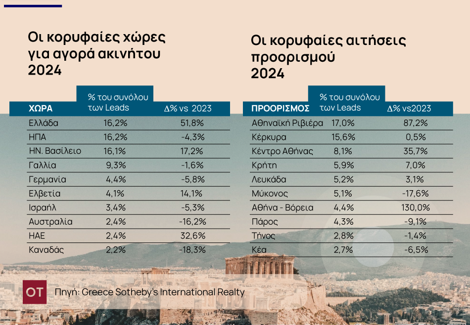 Οσον αφορά τους προορισμούς, με βάση πάντα τα στοιχεία από τη γνωστή εταιρεία παροχής κτηματομεσιτικών υπηρεσιών στον κλάδο των πολυτελών ακινήτων, έχει ενδιαφέρον ότι η Αθήνα παραμένει σταθερά πρώτη στις προτιμήσεις των υποψηφίων αγοραστών, με τη Μύκονο να υποχωρεί στην 6η θέση.