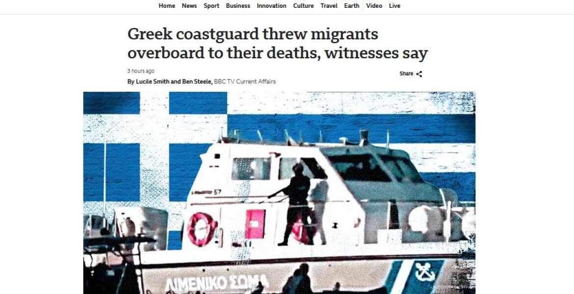 Σύμφωνα με το BBC έρευνά του βασίζεται μεταξύ άλλων σε εννέα μάρτυρες και συγκεκριμένα αναφέρει ότι «το ελληνικό λιμενικό ρίχνει μετανάστες στη θάλασσα για να πεθάνουν». «Η ελληνική ακτοφυλακή έχει προκαλέσει το θάνατο δεκάδων μεταναστών στη Μεσόγειο σε διάστημα τριών ετών, λένε αυτόπτες μάρτυρες, συμπεριλαμβανομένων εννέα που πετάχτηκαν εσκεμμένα στο νερό».
