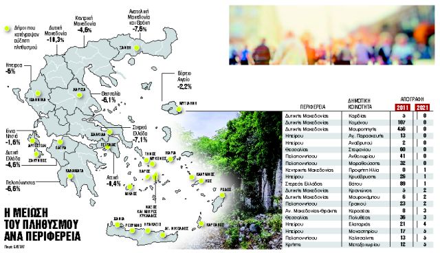 «Η Ελλάδα είναι μία από τις πλέον γερασμένες χώρες της Ευρωπαϊκής Ενωσης, ενώ τα τελευταία έτη παρουσίασε ταυτόχρονα από τις ταχύτερες αυξήσεις της διάμεσης ηλικίας του πληθυσμού της. Σε εθνικό επίπεδο, το ποσοστό των ατόμων 65 ετών και άνω υπερβαίνει το 22,5%», λέει στα «ΝΕΑ» ο καθηγητής Δημογραφίας του Πανεπιστημίου Θεσσαλίας και επιστημονικός υπεύθυνος του χρηματοδοτούμενου από το ΕΛΙΔΕΚ ερευνητικού προγράμματος «Δημογραφικά Προτάγματα στην Ερευνα και Πρακτική στην Ελλάδα» Βύρων Κοτζαμάνης. Σύμφωνα με τον ίδιο «από τη σύγκριση των στοιχείων των δύο τελευταίων απογραφών προκύπτει μια σημαντική μείωση του πληθυσμού – υπερτριπλάσια της μείωσης που καταγράφεται σε εθνικό επίπεδο, δηλαδή του 3% – στις μισές από τις 1.000 και πλέον δημοτικές ενότητες της χώρας και στην πλειοψηφία των σχεδόν 6.300 κοινοτήτων της, κυρίως σε αυτές με πληθυσμό κάτω των 300 κάτοικων που δεν ανήκουν στις περιφέρειες των δύο μητροπολιτικών κέντρων, της Αθήνας και της Θεσσαλονίκης».
