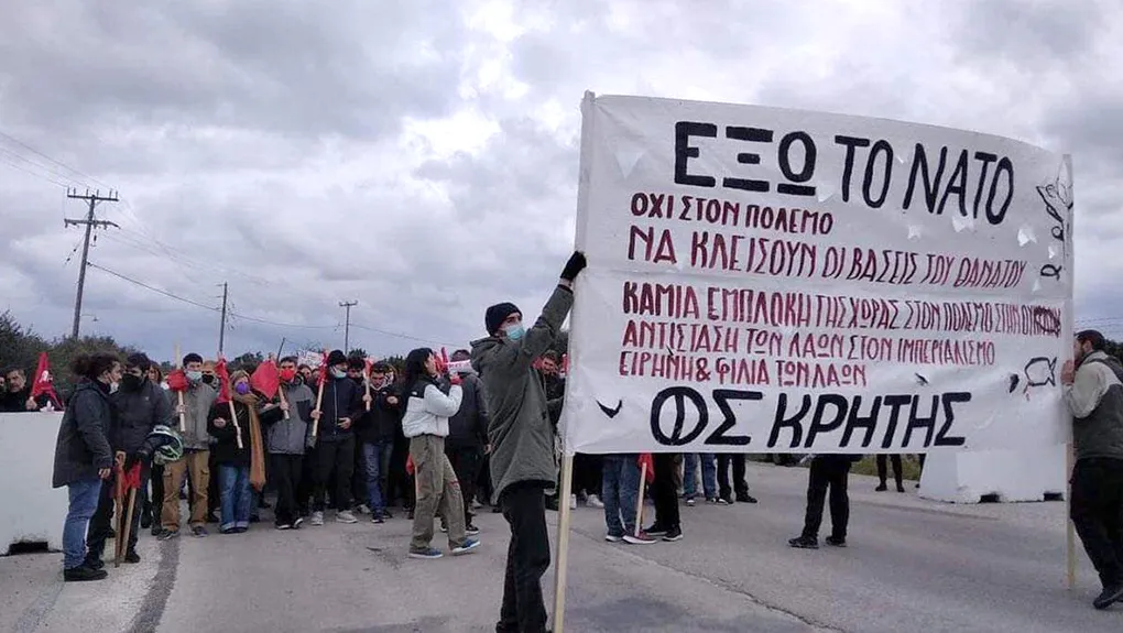 «Ούτε γη, ούτε νερό στους φονιάδες των λαών» και «Θέλουμε την Σούδα λιμάνι των λαών και όχι ορμητήριο των ιμπεριαλιστών» φώναξαν οι πολίτες, που συγκεντρώθηκαν για να διαμαρτυρηθούν ενάντια στους ανεπιθύμητους «φονιάδες των λαών», όπως έγραφαν τα πανό τους.