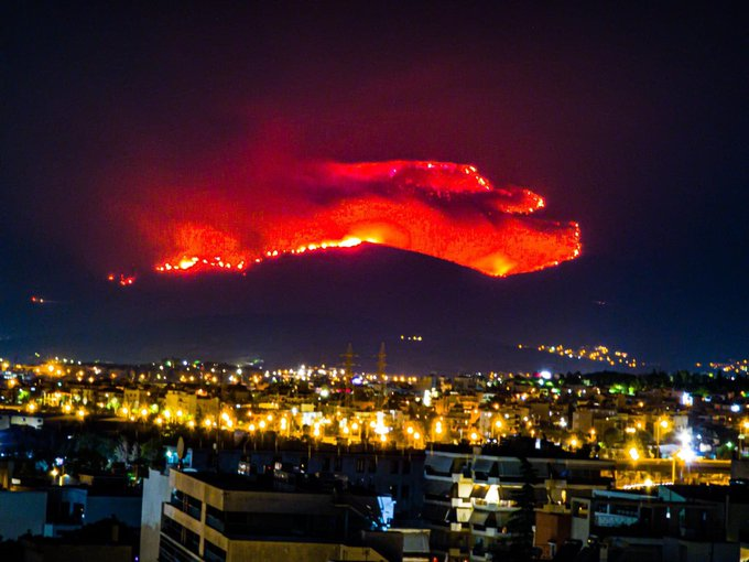 Δεν έχει τελειωμό η πύρινη λαίλαπα που έχει σαρώσει ολόκληρη την χώρα. Οι προσπάθειες των πυροσβεστικών δυνάμεων είναι υπεράνθρωπες αλλά κάθε ριπή ανέμου δυσκολεύει στιγμή στιγμή τη δουλειά τους. Εξαιρετικά δύσκολη είναι η φωτιά στην περιοχή της Πάρνηθας με τις φλόγες κατά τη διάρκεια της νύχτας να έχουν φτάσει στα όρια του Εθνικού Δρυμού. Η ελπίδα για περιορισμό του μετώπου βρίσκεται πλέον στα εναέρια μέσα τα οποία άρχισαν να πετούν με το πρώτο φως της μέρας.