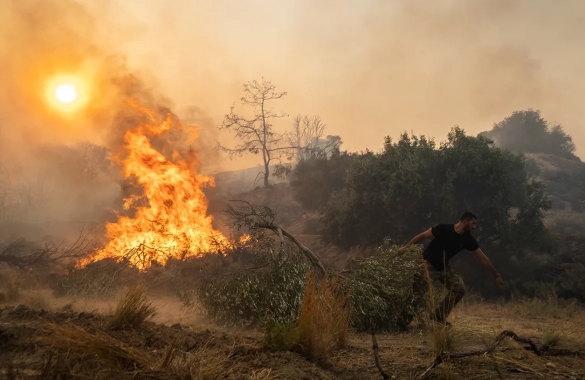 Πρόκειται για το φαινόμενο «Hot-Dry-Windy», όπως ονομάζεται χαρακτηριστικά από τους μετεωρολόγους, ο ζεστός, ξηρός και ανεμώδης καιρός που ευνοεί την εξάπλωση των δασικών πυρκαγιών.