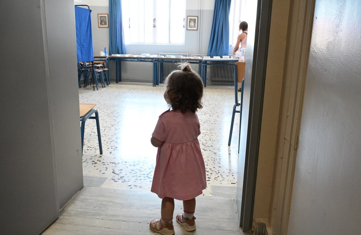 Ο φωτογραφικός φακός εστίασε και σε ένα χαριτωμένο κοριτσάκι που μπήκε στο παραβάν.