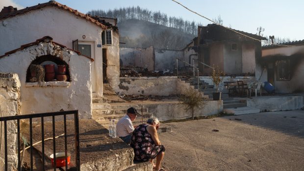 Οι εικόνες που έρχονται από τις πληγείσες περιοχές καθηλώνουν. Εικόνες όπως αυτή πάνω, όπου ένα ηλικιωμένο ζευγάρι, στην Κομοτηνή, κάθεται δίπλα στα ερείπια του σπιτιού του, που κάηκε από τη φωτιά, και θρηνεί.