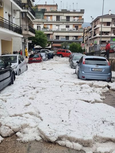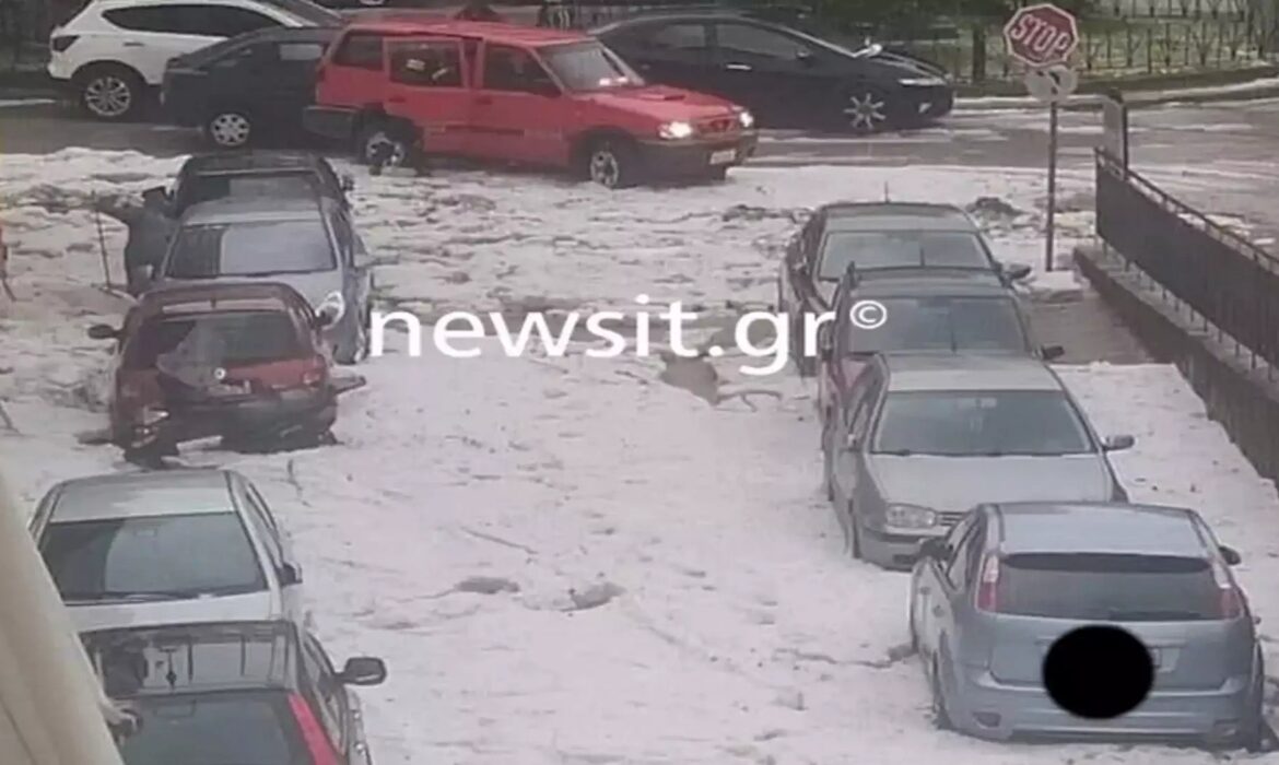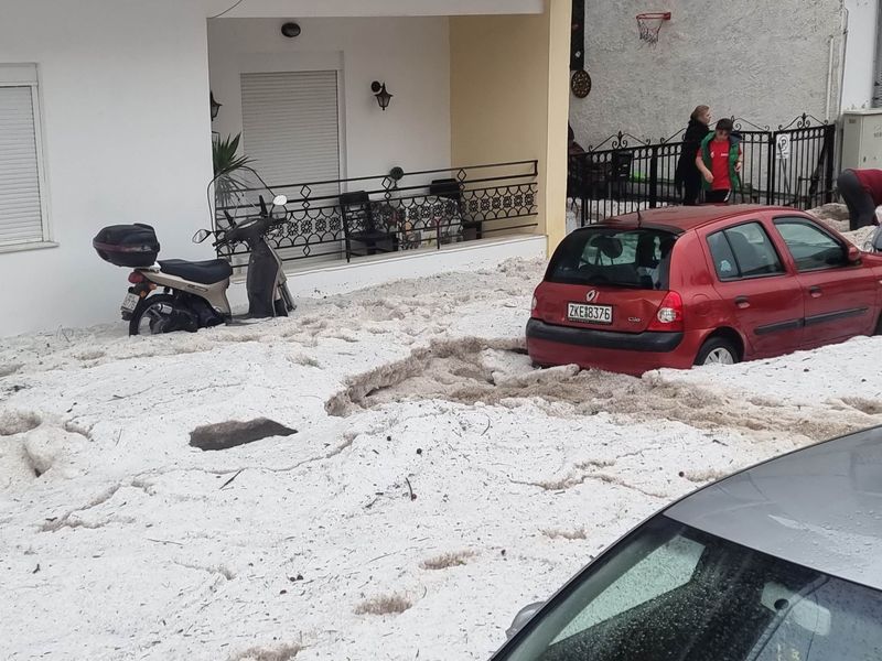 Αρχές καλοκαιριού και στα Γιάννενα ο καιρός θυμίζει Φθινόπωρο. Η σφοδρή χαλαζόπτωση το μεσημέρι κράτησε λίγα λεπτά, που όμως ήταν αρκετά για να αλλάξουν το σκηνικό στην πόλη. Σπίτια, δρόμοι και αυλές ντύθηκαν στα λευκά, με το χαλάζι που είχε μέγεθος φουντουκιού να παίρνει σε ορισμένα σημεία ύψος.