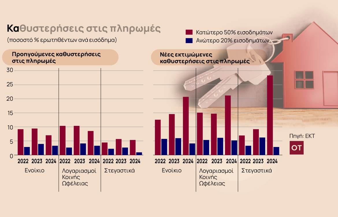 Το σχετικό ποσοστό έχει ανέλθει στο 20% με βάση τα στοιχεία του Ιανουαρίου 2024, από περίπου 15% το 2023. Επίσης το ποσοστό έχει διπλασιαστεί και φτάνει σχεδόν στο 30% όσον κάνουν λόγο για φόβους καθυστέρησης στις πληρωμές στεγαστικών δανείων.