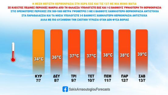 - Κυριακή 7/7: 34 βαθμούς Κελσίου