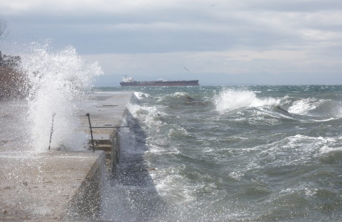 Θαλασσοταραχή επικρατεί σε όλο τον Θερμαϊκό κόλπο. Τεράστια κύματα χτυπούν το παραλικό μέτωπο. Συναγερμός σήμανε για το πλήρωμα του ιστορικού αντιτορπιλικού “Βέλος”, καθώς τα μανιασμένα κύματα αποτελούν σημαντική απειλή ακόμη και για πιθανή βύθισή του.