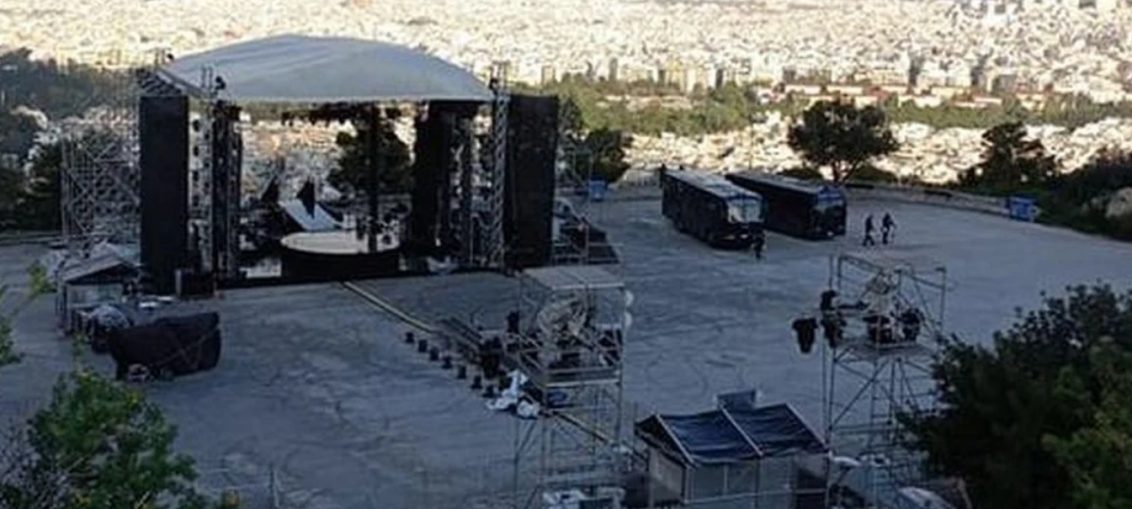 Κλούβες των ΜΑΤ έχουν παραταχθεί από χθες στην πλατεία στον λόφο του Λυκαβηττού, και περιφρουρούν την σκηνή που στήθηκε για το σημερινό προκλητικό σόου διάρκειας 17 λεπτών, χωρίς θεατές λόγω πανδημίας και κατ εξαίρεση από τα μέτρα της ΚΥΑ που ανακοινώθηκαν προχτές και απαγορεύουν κάθε δημόσιο ή ιδιωτικό πάρτυ λόγω κορονοιού, και κόστους 211.000 ευρώ!