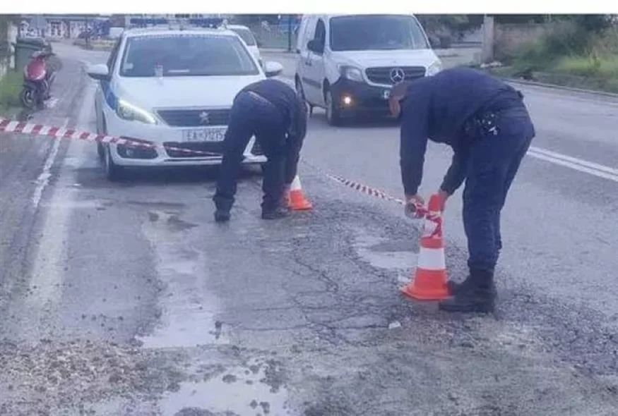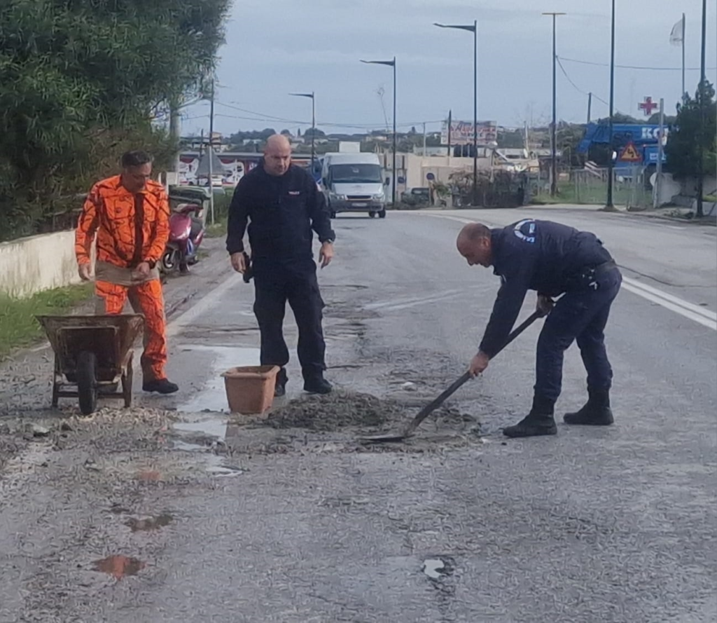 Αστυνομικοί μετά τις καταγγελίες των πολιτών βρέθηκαν στην περιοχή και αποφάσισαν να αναλάβουν δράση. Σταμάτησαν μπετονιέρα που περνούσε τυχαία και ζήτησαν από τον οδηγό να ρίξει λίγο μπετόν. Οι ίδιοι βοήθησαν παίρνοντας το φτυάρι κλείνοντας προσωρινά τις επικίνδυνες λακκούβες.