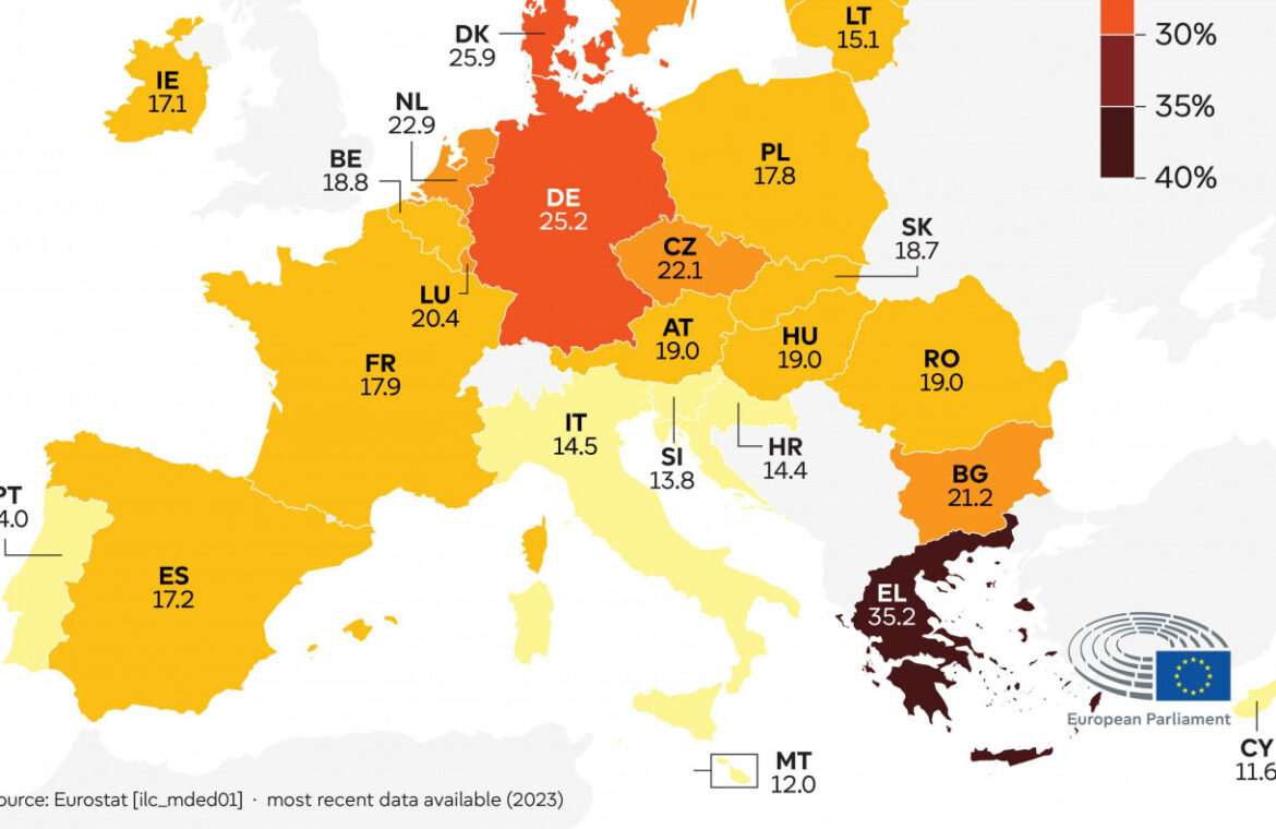 - Στη νέα ανάρτηση του Ευρωπαϊκού Κοινοβουλίου με θέμα τη στεγαστική κρίση, η Ελλάδα ξεχωρίζει, βαμμένη στα μαύρα, αφού έχει μακράν το υψηλότερο κόστος στέγασης στην ΕΕ, ως προς το διαθέσιμο εισόδημα.