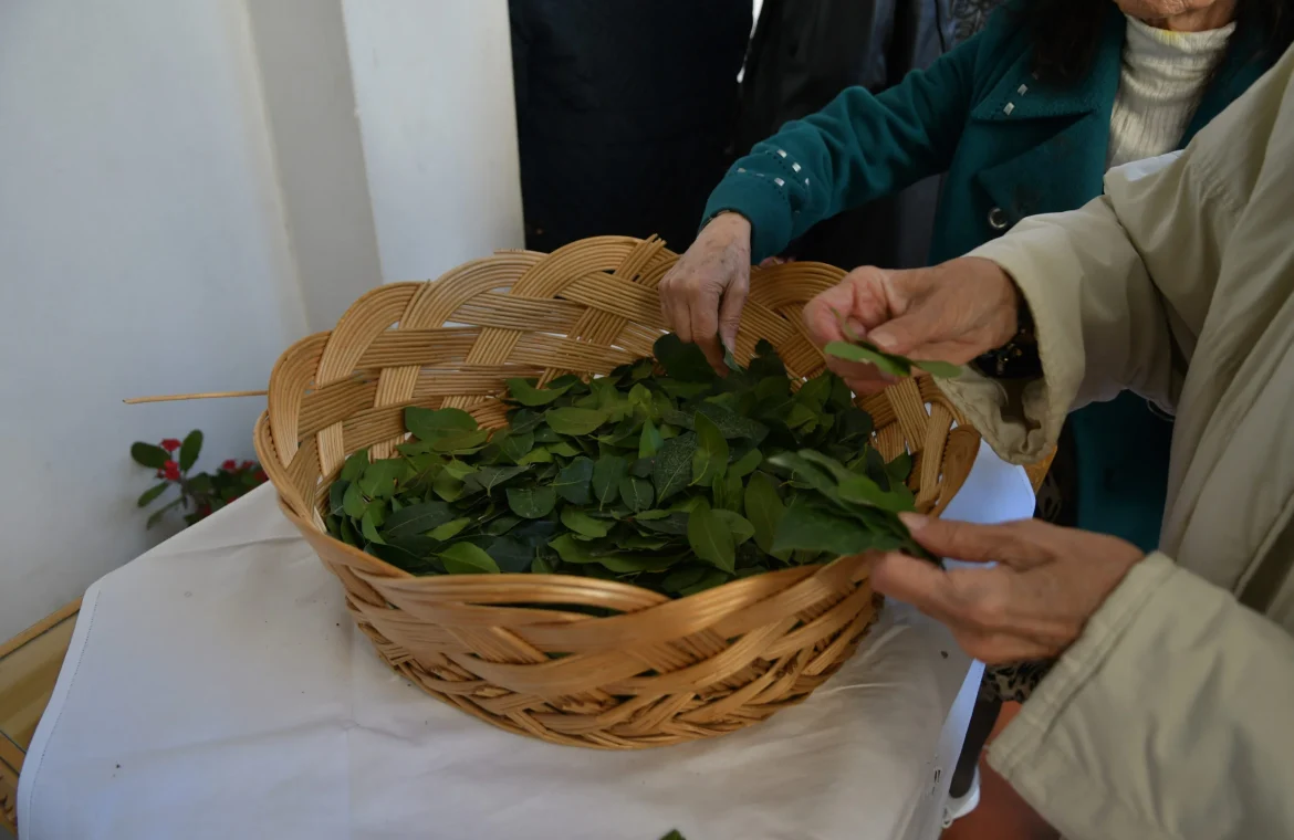 Και σήμερα ακόμα όλες οι εκκλησίες στολίζονται με δαφνόφυλλα ή βάγια.