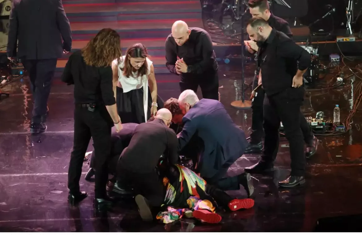 Αμέσως έσπευσαν κοντά της οι δικοί της άνθρωποι και οι συνεργάτες της και την σήκωσαν για να την μεταφέρουν πρώτα στα παρασκήνια και στη συνέχεια στο νοσοκομείο.