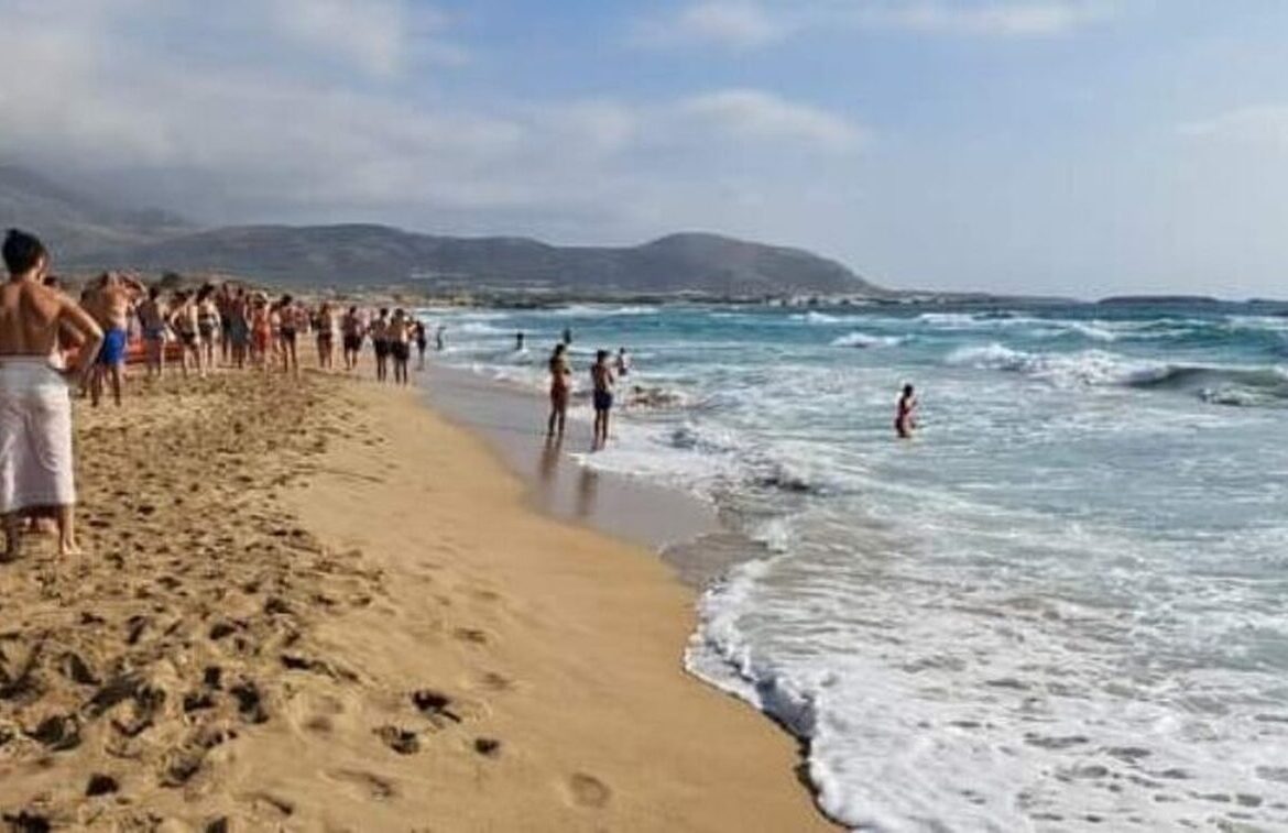 Το απόγευμα της Δευτέρας στα Φαλάσαρνα η θάλασσα δεν ήταν για μπάνιο. Υπήρχε αέρας, υψηλός κυματισμός και στον πύργο του ναυαγοσώστη ανέμιζε η κόκκινη απαγορευτική σημαία.