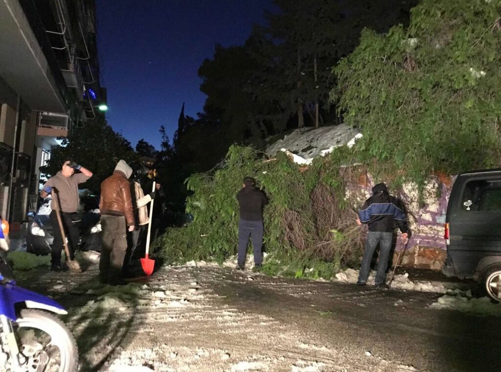 «Μέλη του Ρουβίκωνα ανοίγουν δρόμους στα Εξάρχεια οι οποίοι έχουν κλείσει από τον πάγο και πεσμένα δέντρα.