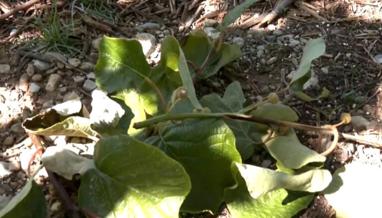 Ο πρόεδρος του Αγροτικού Συνεταιρισμού ΠΕΣΚΟ, Ηλίας Γκρίνιας δείχνει στην κάμερα της ΕΡΤ3 τις ζημιές, που προκάλεσε η ανεμοθύελλα της Μ. Παρασκευής σε παραγωγές τριών χωριών του Δήμου Δίου Ολύμπου. Η ζημιά στα ακτινίδια αγγίζει το 80% και θα φανεί περισσότερο τις επόμενες ημέρες.