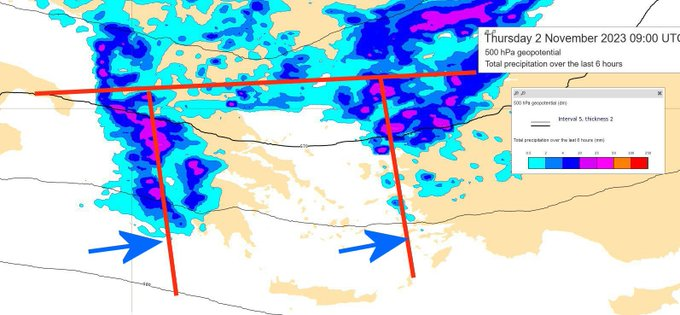 «Πρέπει να ομολογήσω ότι ανησυχώ για τον καιρό του προσεχούς Σαββάτου. Οι δείκτες αστάθειας για την ημέρα αυτή είναι ιδιαίτερα ανεβασμένοι που σημαίνει ότι οι καταιγίδες κατά τόπους θα είναι τόσο ισχυρές που θα οδηγήσουν πιθανότατα σε πλημμυρικά φαινόμενα.