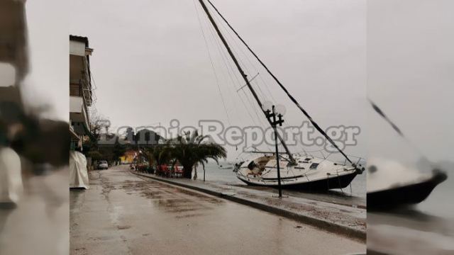 Οι πολύ ισχυροί άνεμοι από νοτιοδυτικές διευθύνσεις που έπνεαν από το βράδυ στην ανατολική Φθιώτιδα, είχαν ως αποτέλεσμα στις Ράχες ιστιοπλοϊκό να βρεθεί στη στεριά!