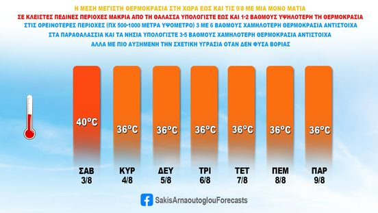 Mε νέα ανάρτηση ο μετεωρολόγος Σάκης Αρναούτογλου κάνει λόγο για 40άρια αύριο, Σάββατο, 3 Αυγούστου και αναφέρεται στις μέγιστες θερμοκρασίες στη χώρα μέχρι τις 9 Αυγούστου.