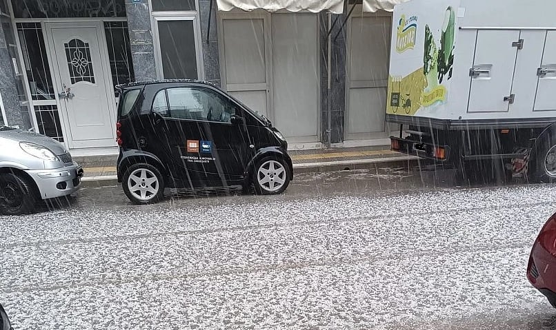 Μάλιστα έντονη νεροποντή διαδέχθηκε το χαλάζι, που άσπρισε τα πάντα στην περιοχή.