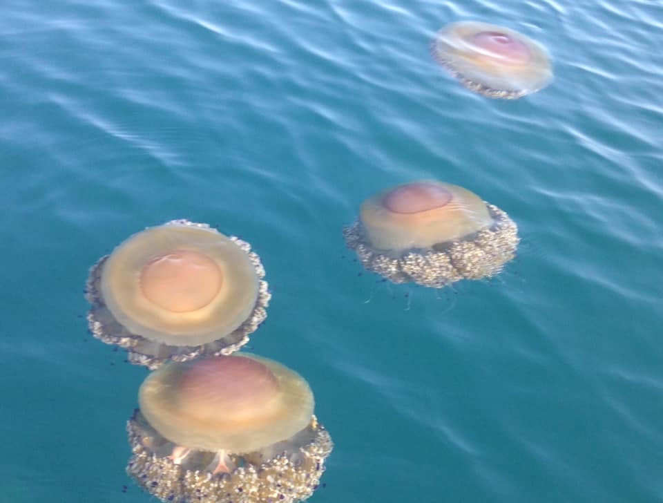 Οι συγκεκριμένες μέδουσες είναι του είδους «καφέ μέδουσα» ή «τηγανητό αυγό» ευρέως γνωστή ως σαλούφα, (επιστημονική ονομασία: Cotylorhiza tuberculata). Είναι ένα είδος μέδουσας του φύλου Cnidaria. Συναντάται συχνά στη Μεσόγειο Θάλασσα, το Αιγαίο Πέλαγος και την Αδριατική Θάλασσα. Μπορεί να φτάσει τα 40 εκατοστά σε διάμετρο, αλλά το πλάτος της είναι συνήθως μικρότερο από 17 εκατοστά. Φαίνεται ότι το τσίμπημα αυτής της μέδουσας έχει πολύ μικρή ή καθόλου επίδραση στον άνθρωπο.