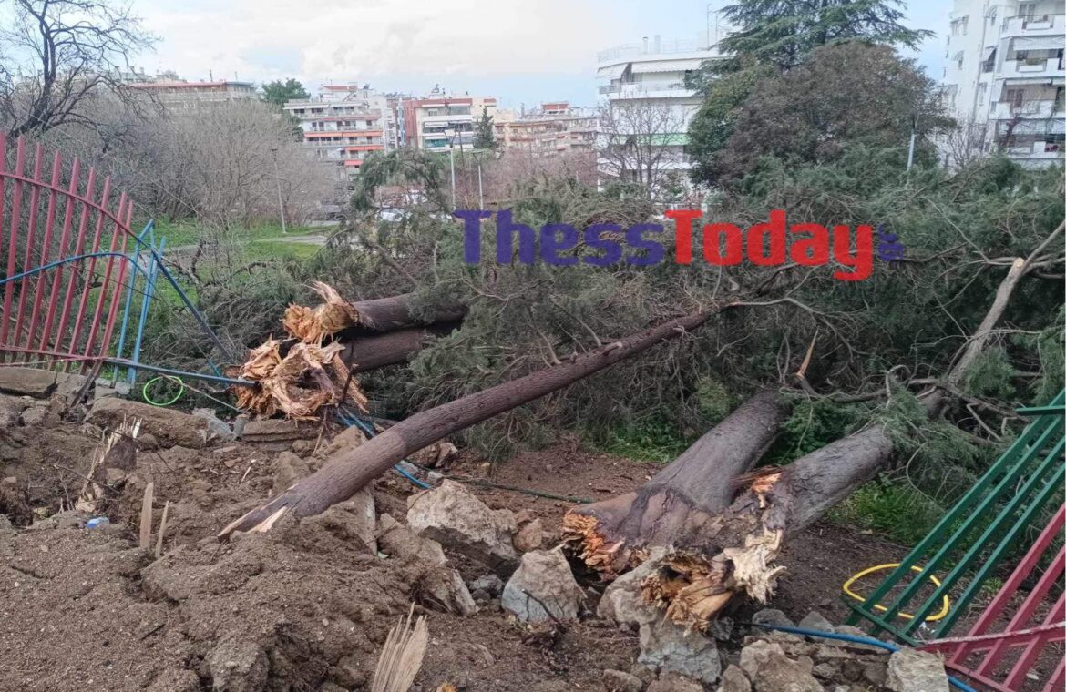 Στο μάτι του κυκλώνα βρέθηκε και η Θεσσαλονίκη με τις πρώτες εικόνες που έρχονται στο φως της δημοσιότητας, να δείχνουν πτώσεις δέντρων και πολλά προβλήματα στην πόλη. Από τους θυελλώδεις ανέμους ξεριζώθηκαν τουλάχιστον εννέα δέντρα, τα οποία προκάλεσαν εκτεταμένες ζημιές σε χώρο σχολείου στη Χαριλάου.