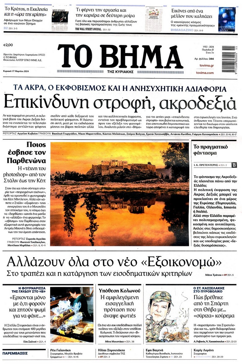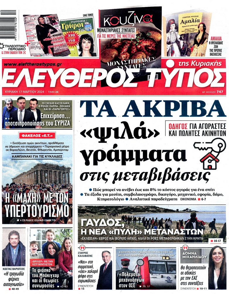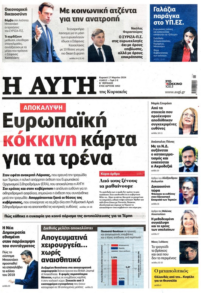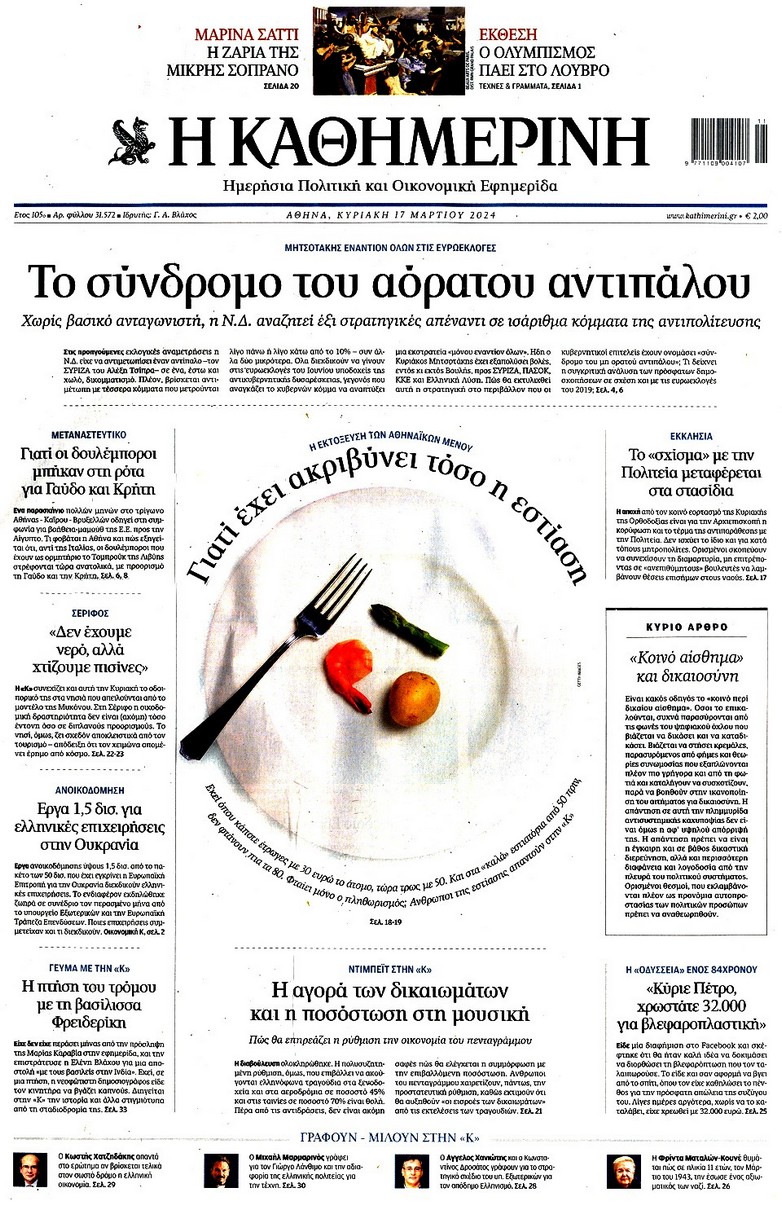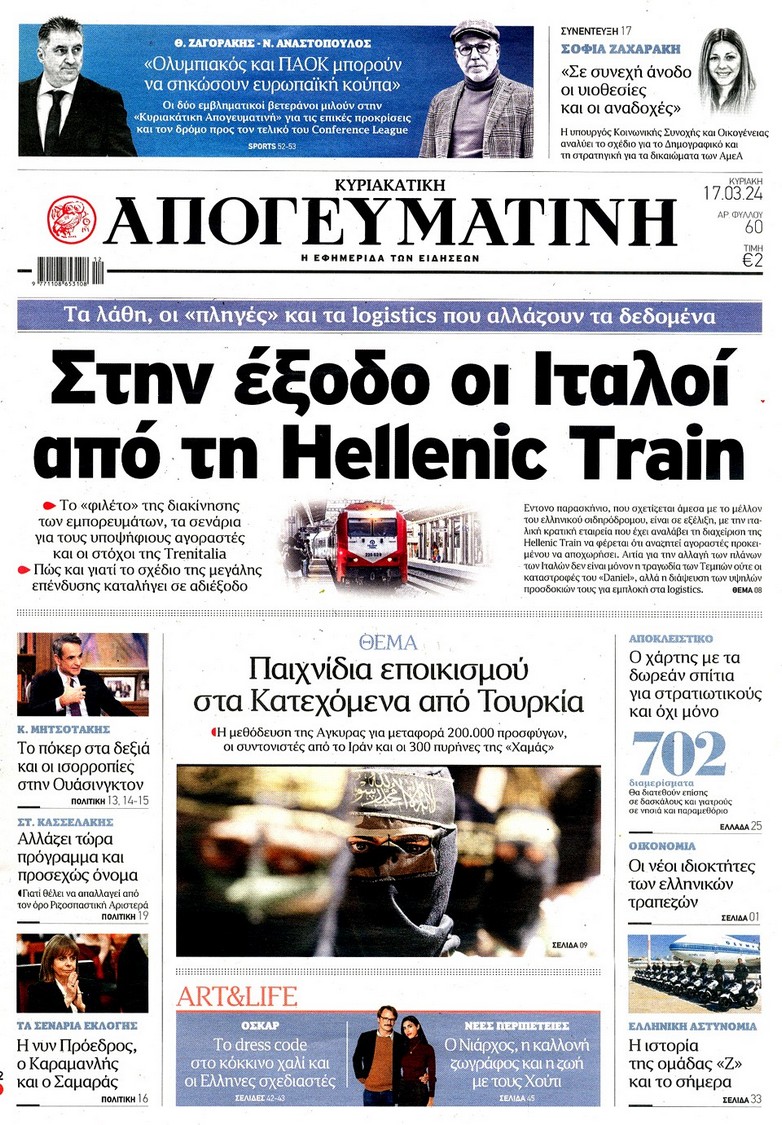 Η οικονομική και πολιτική επικαιρότητα κυριαρχεί στα πρωτοσέλιδα του Κυριακάτικου(17/3) Τύπου: