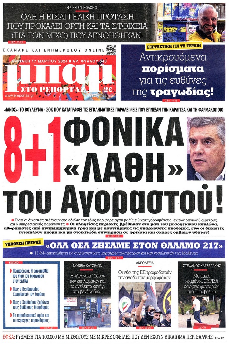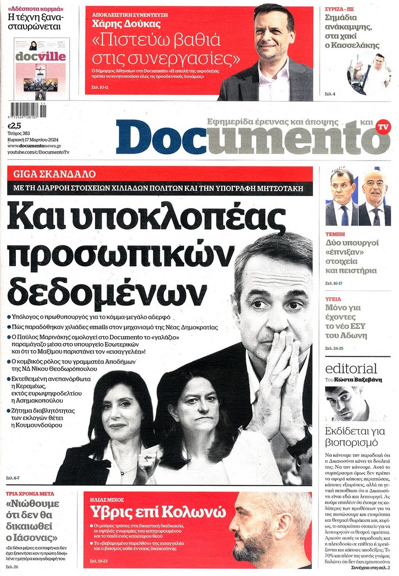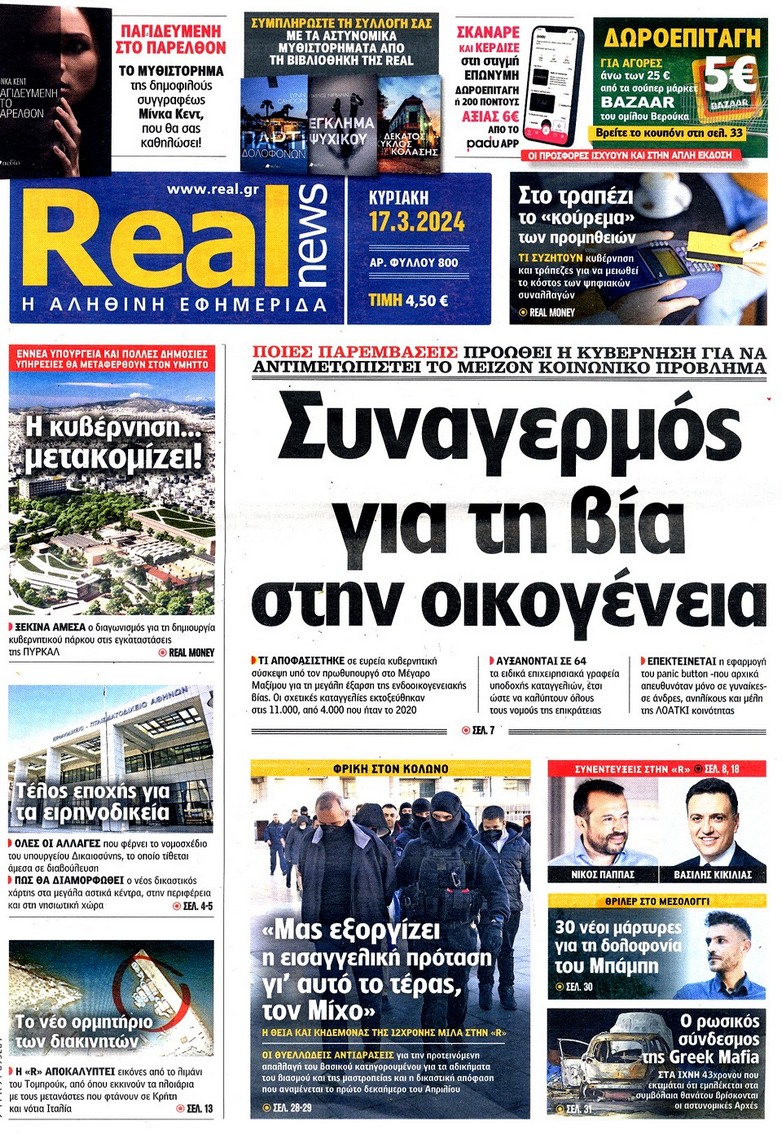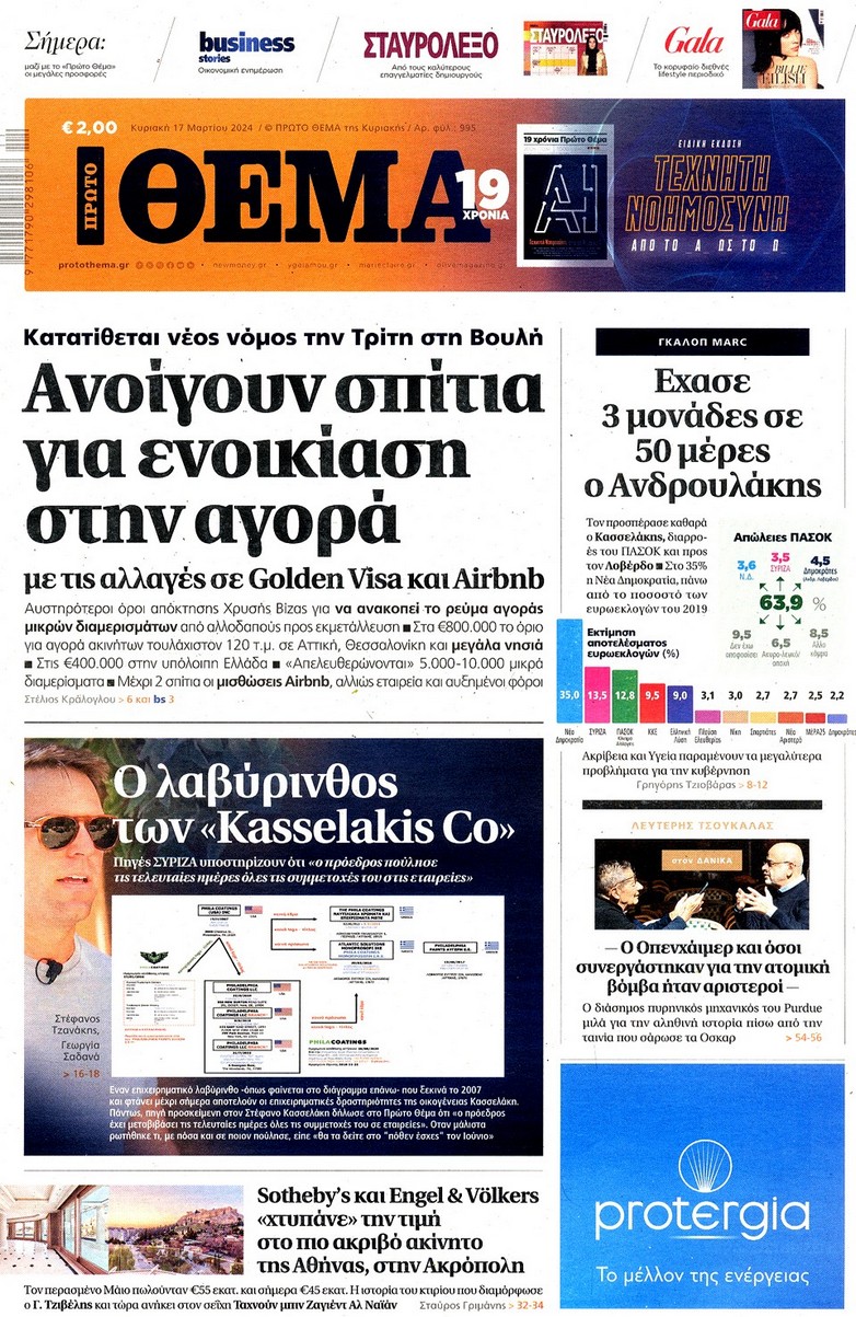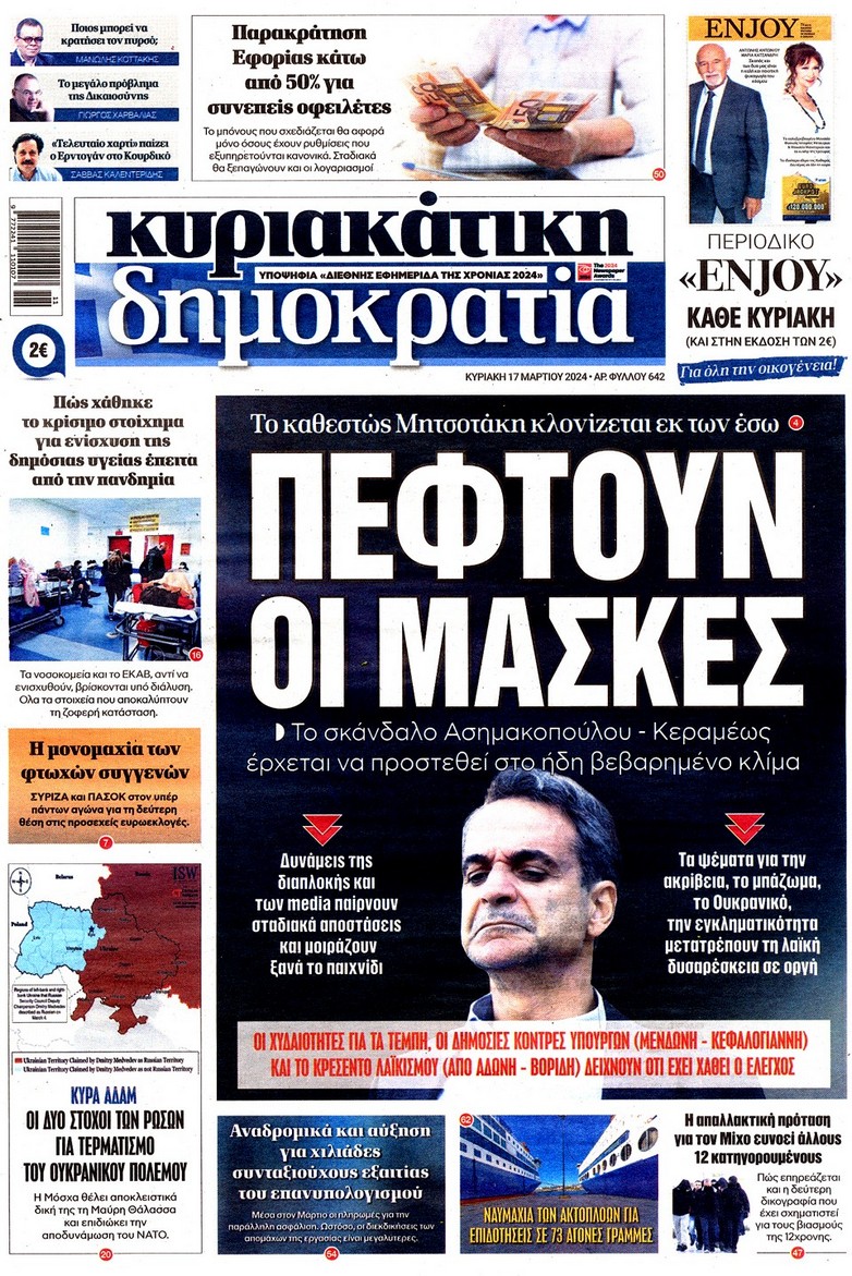 Η οικονομική και πολιτική επικαιρότητα κυριαρχεί στα πρωτοσέλιδα του Κυριακάτικου(17/3) Τύπου: