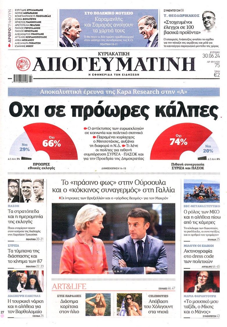 Ελλάδα, Πρωτοσέλιδο Κυβερνητικό μέτωπο κατά Κοβέσι Είχε προηγηθεί ο υφυπουργός Εξωτερικών Χάρης Θεοχάρης, ο οποίος αποφάνθηκε πως «εάν τα ευρήματα της δικογραφίας αποδειχθούν «σκουπίδια, τότε όσοι… Απρ 21, 2026 to kentri