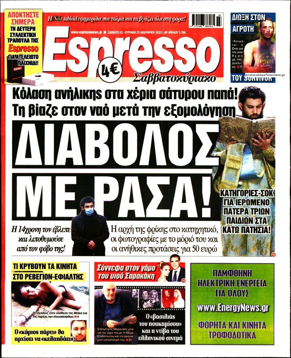 Ελλάδα Τα πρωτοσέλιδα του αθηναϊκού Τύπου Ιαν 22, 2022 to kentri Twitter Facebook LinkedIn Pinterest Email Οι εφημερίδες που κυκλοφορούν σήμερα Σάββατο 22 Ιανουαρίου 2022 Δείτε τα πρωτοσέλιδα του σημερινού αθηναϊκού Τύπου: ΠΗΓΗ: formedia.gr ❝ ετικέτες ❞ #ΠΡΩΤΟΣΕΛΙΔΑ