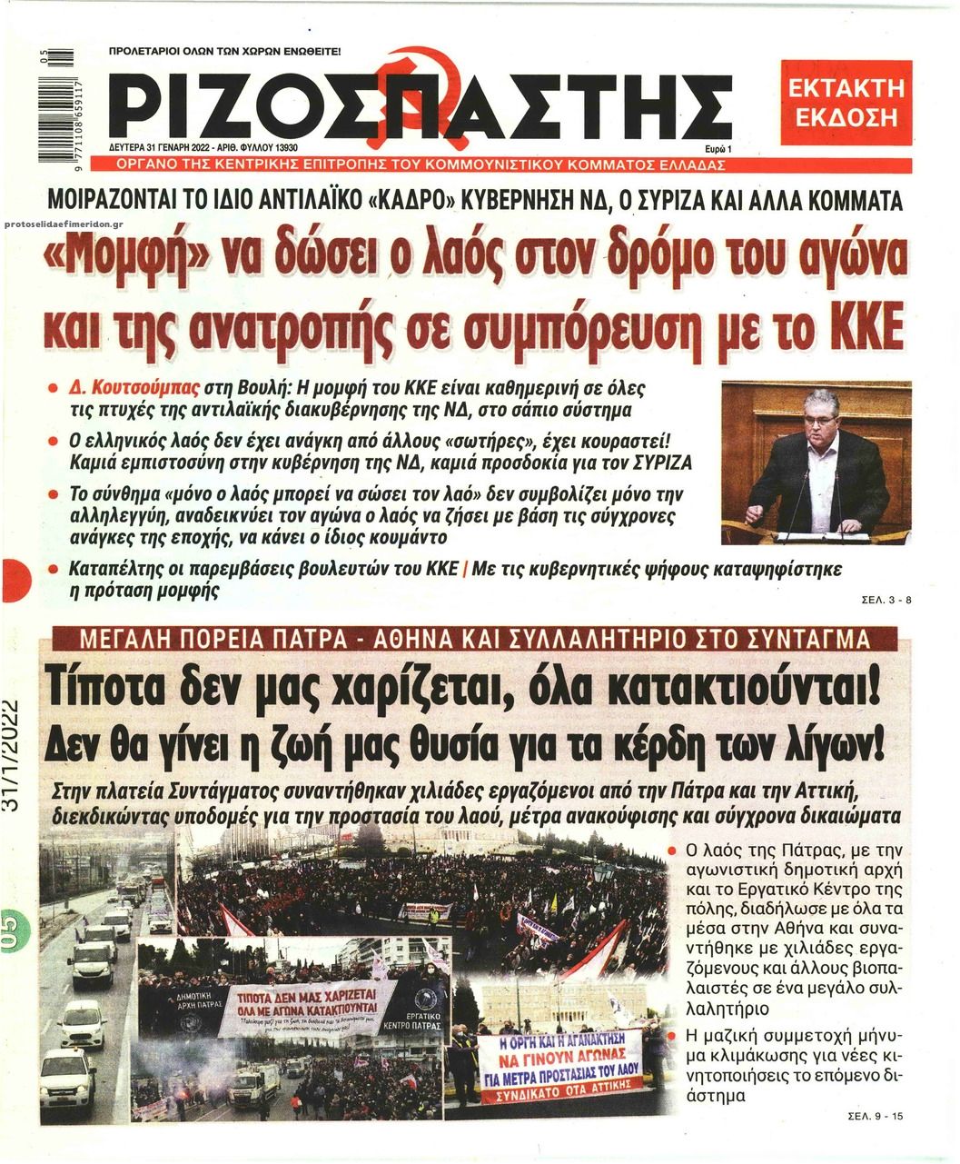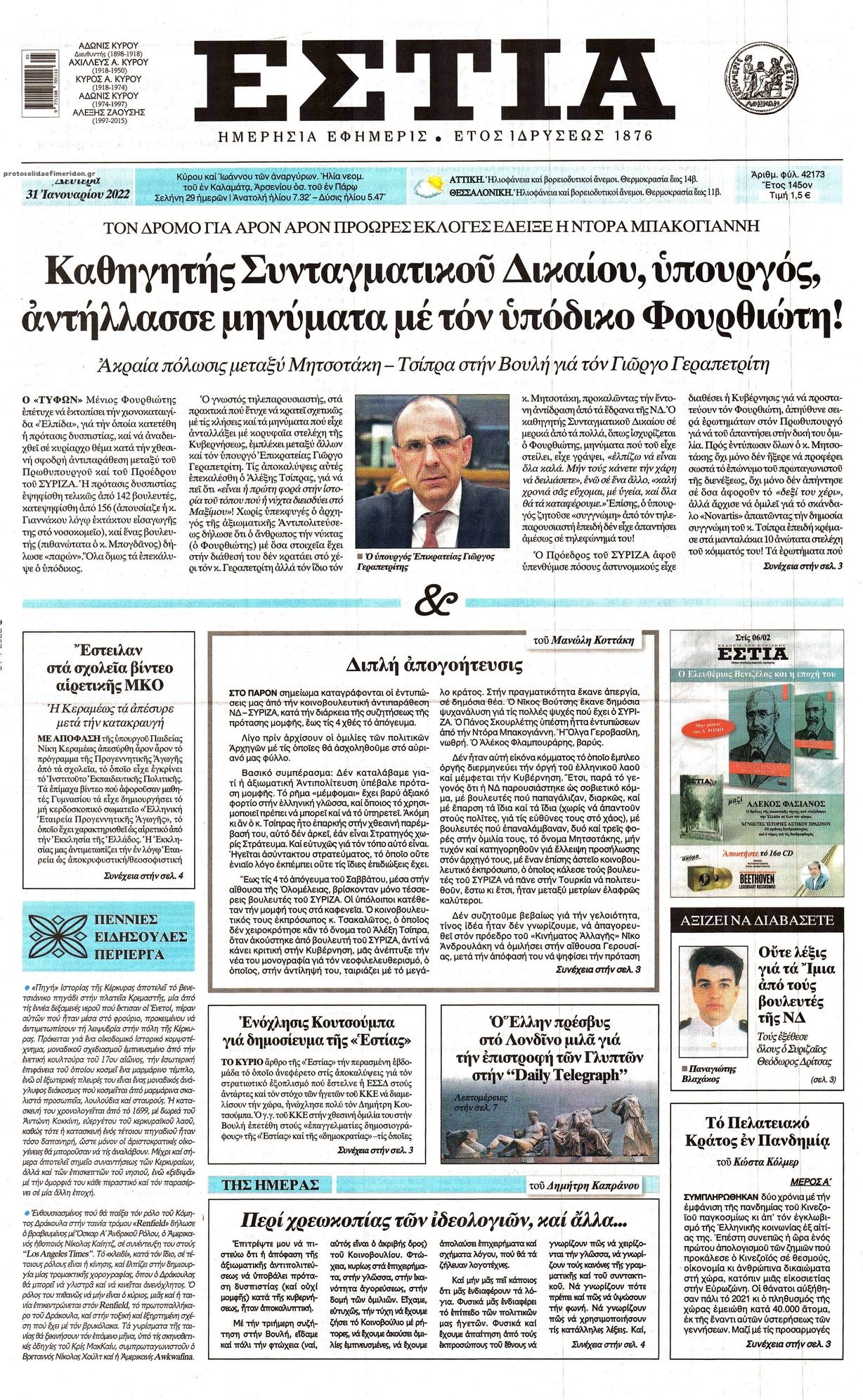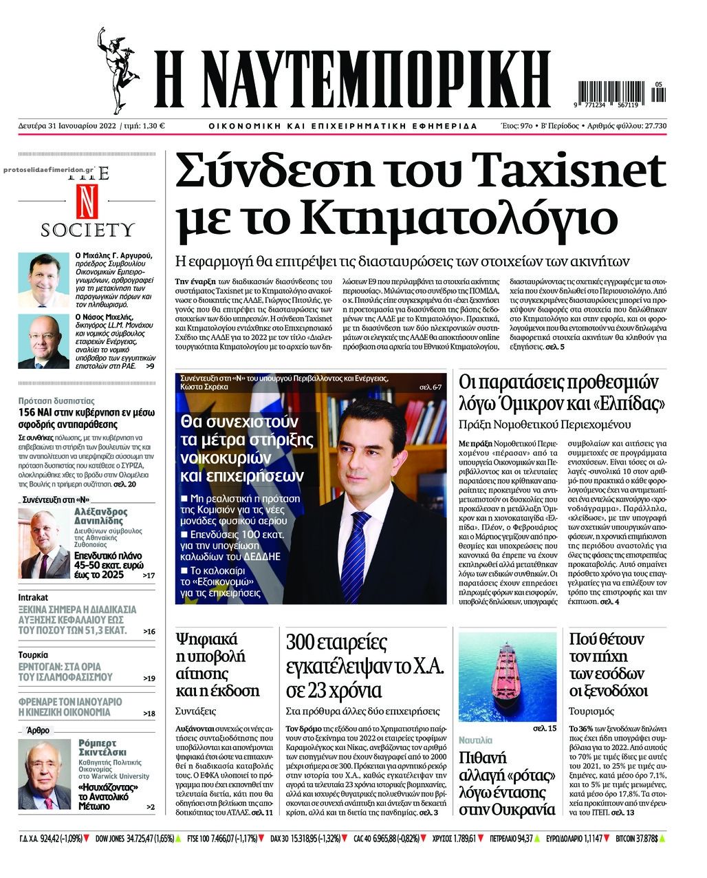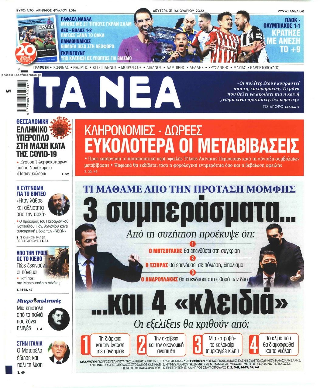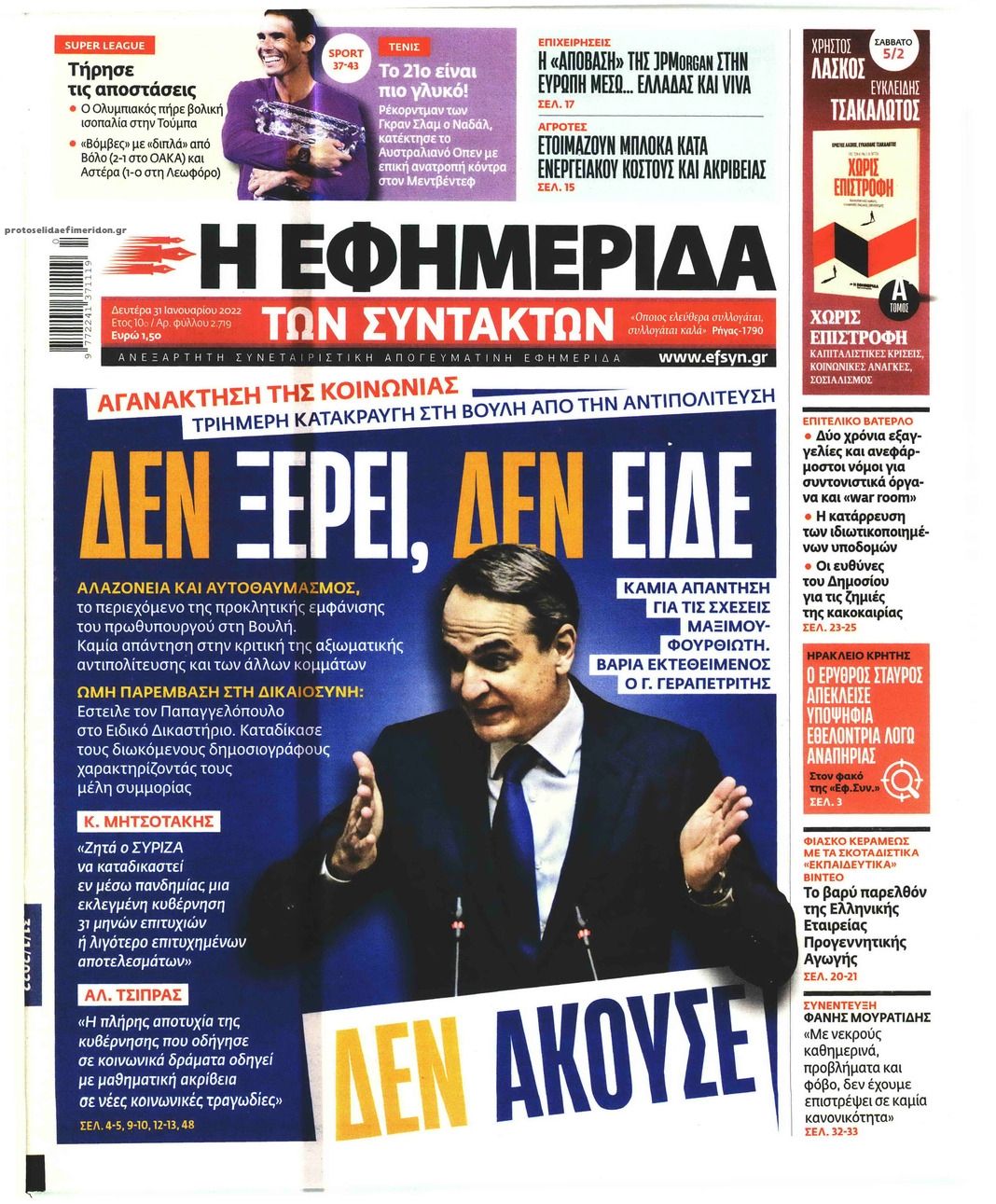 Ελλάδα Τα πρωτοσέλίδα του αθηναϊκού Τύπου Ιαν 31, 2022 to kentri Twitter Facebook LinkedIn Pinterest Email Οι εφημερίδες που κυκλοφορούν σήμερα Δευτέρα 31 Ιανουαρίου 2022 Δείτε τα σημερινά πρωτοσέλιδα του αθηναϊκού Τύπου: formedia.g ❝ ετικέτες ❞ #ΠΡΩΤΟΣΕΛΙΔΑ