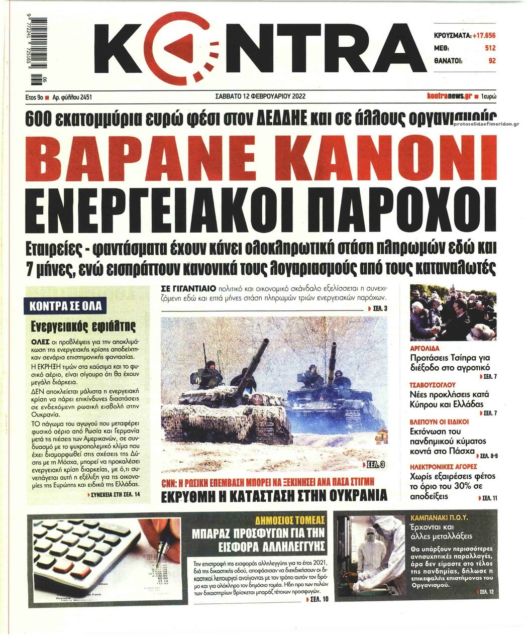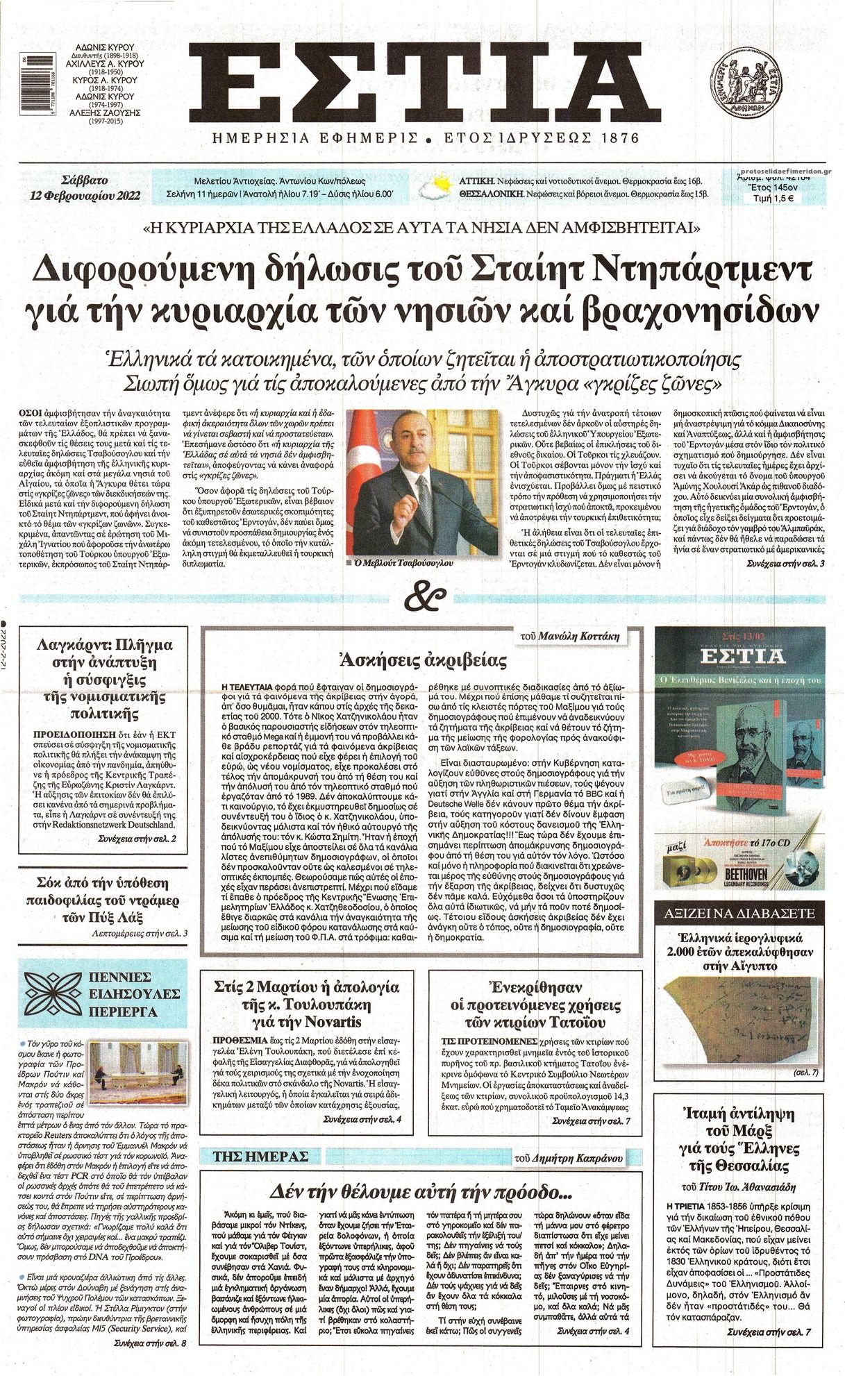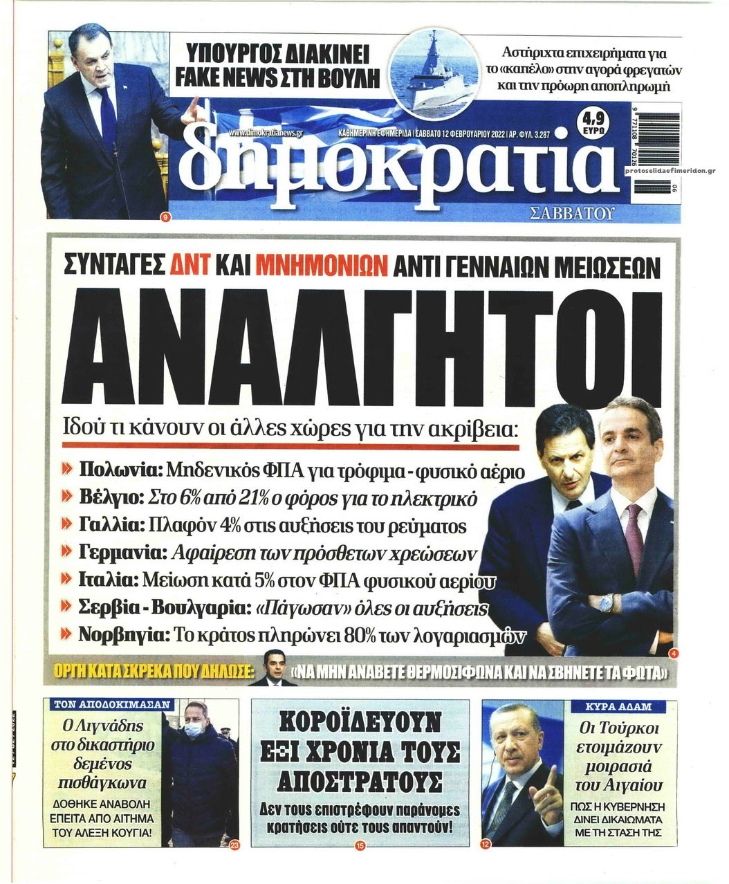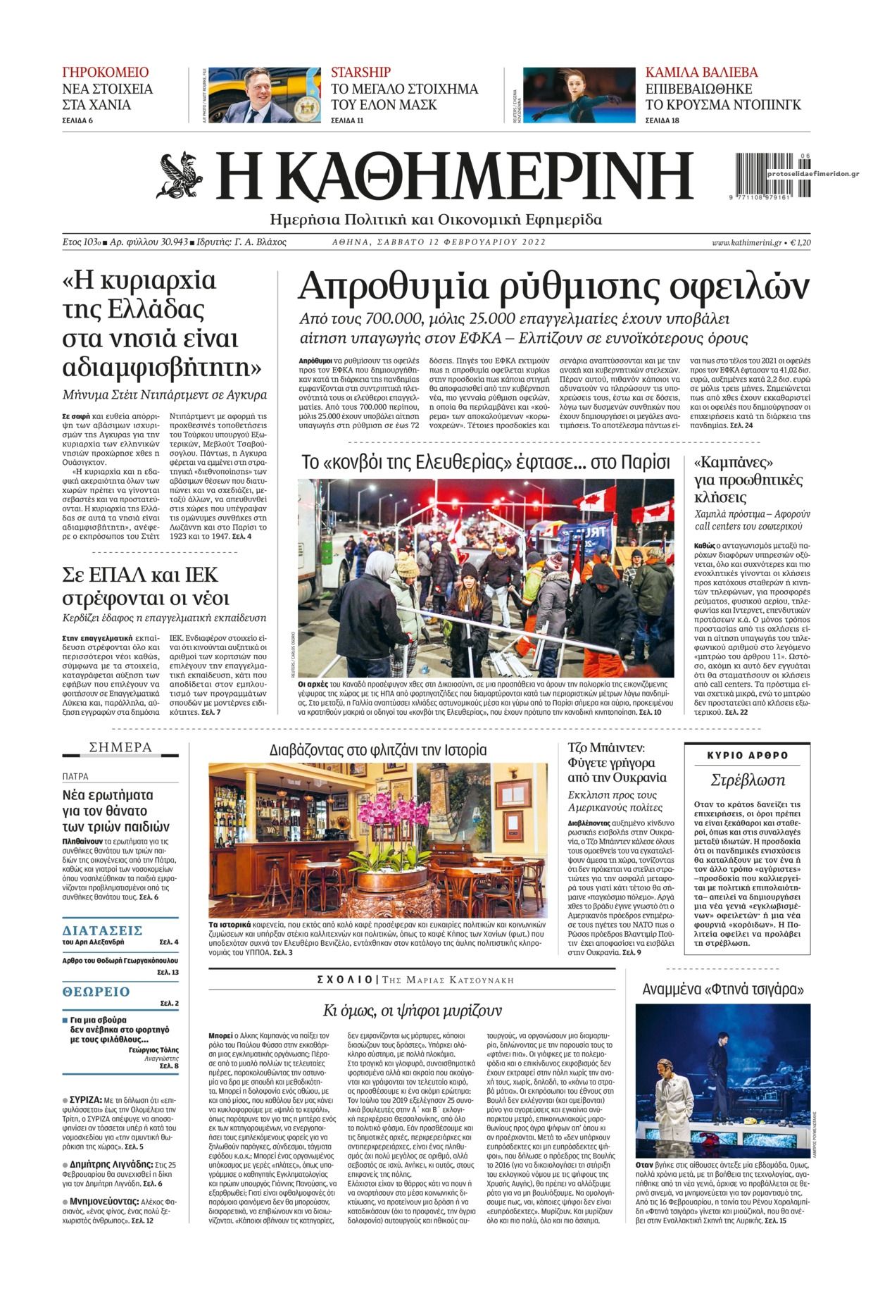 Οι εφημερίδες που κυκλοφορούν σήμερα Σάββατο 12 Φεβρουαρίου 2022