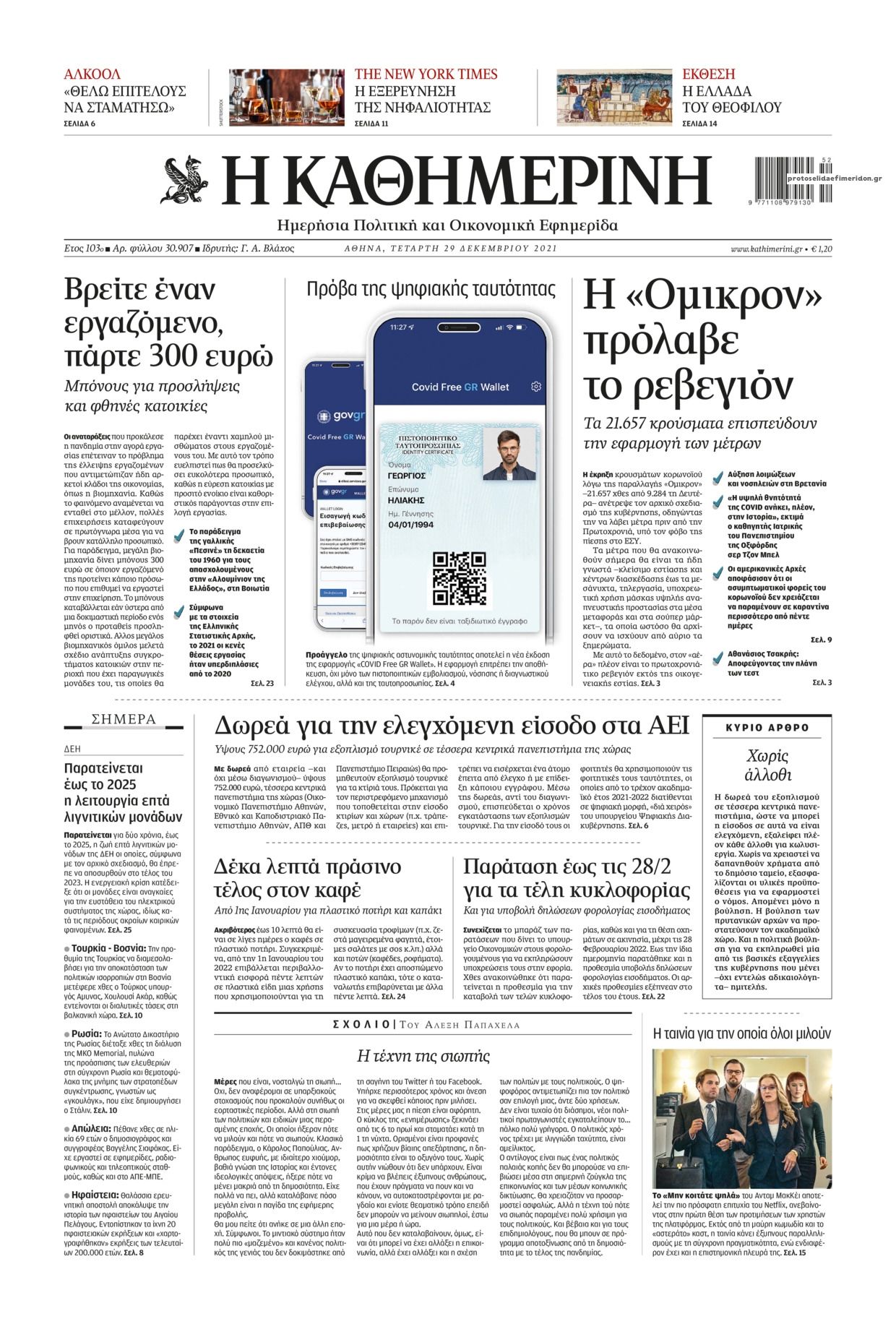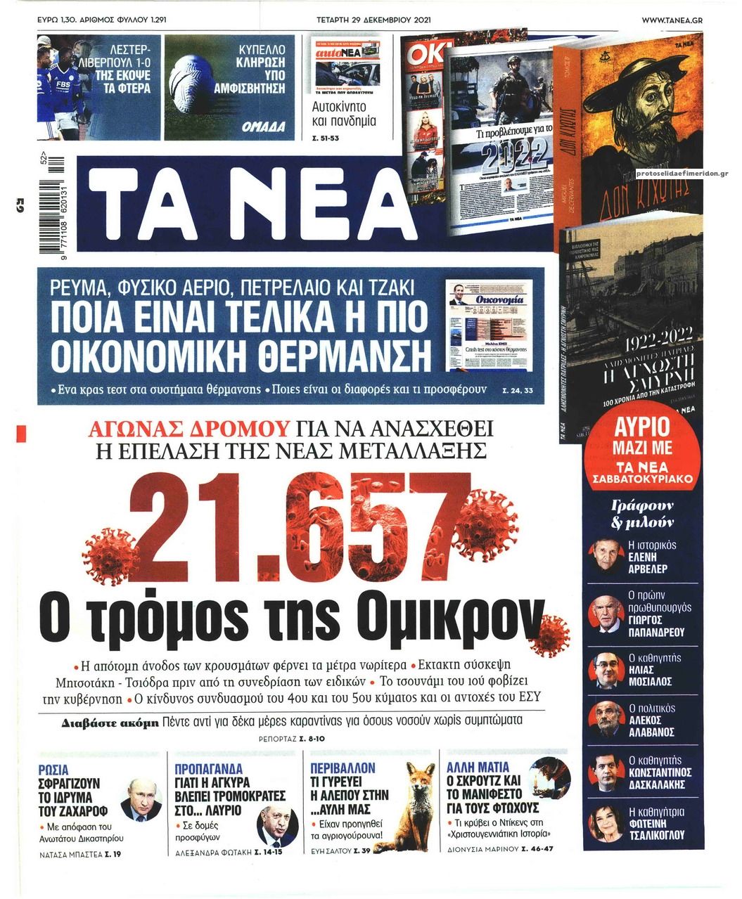 Ελλάδα Τα πρωτοσέλιδα του αθηναϊκού Τύπου Δεκ 29, 2021 to kentri Twitter Facebook LinkedIn Pinterest Email Οι πρώτες σελίδες των εφημερρίδων της Τετάρτης 29 Δεκεμβρίου 2021 Δείτε τα πρωτοσέλιδα του σημερινού αθηναϊκού Τύπου: ❝ ετικέτες ❞ #ΠΡΩΤΟΣΕΛΙΔΑ