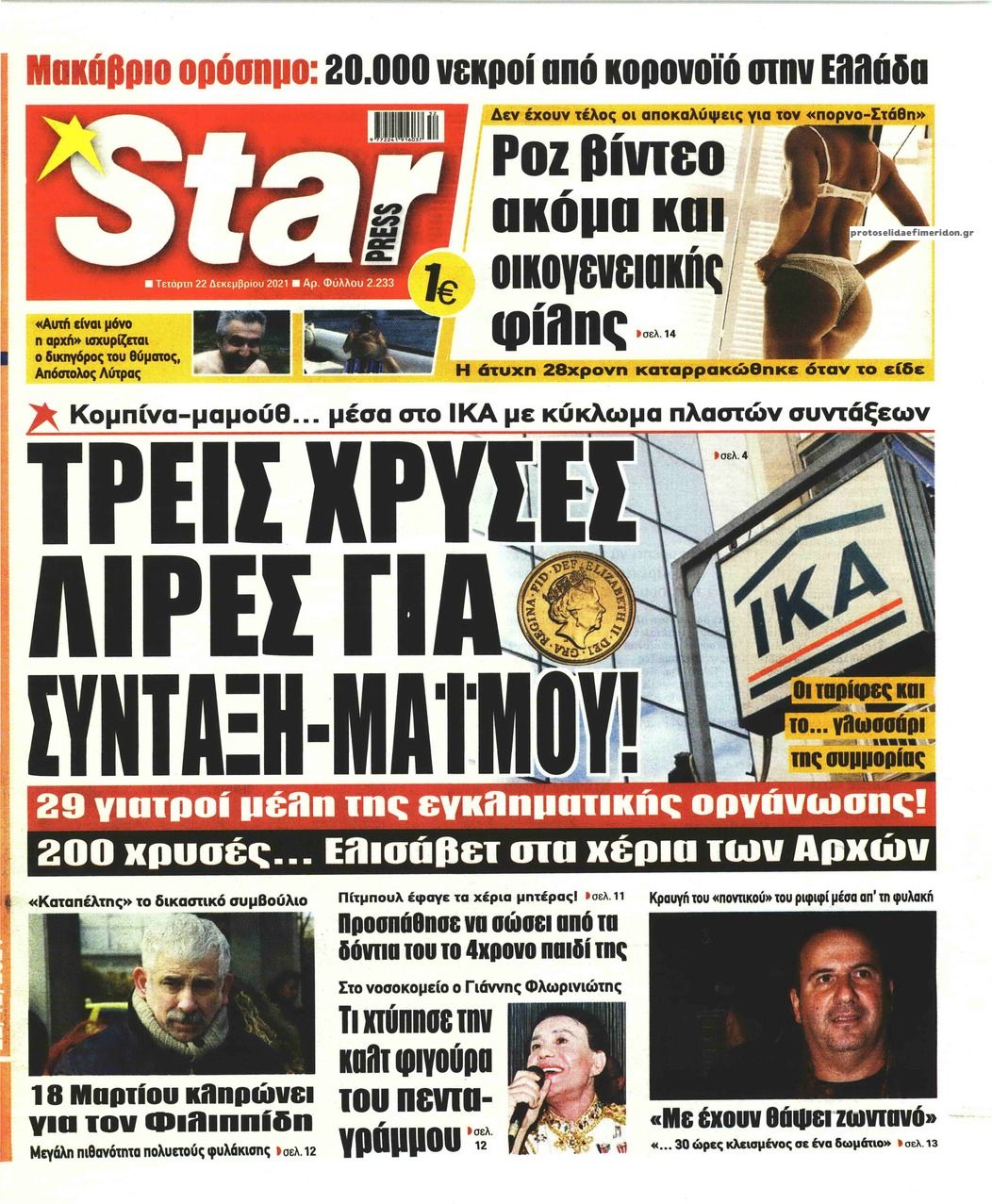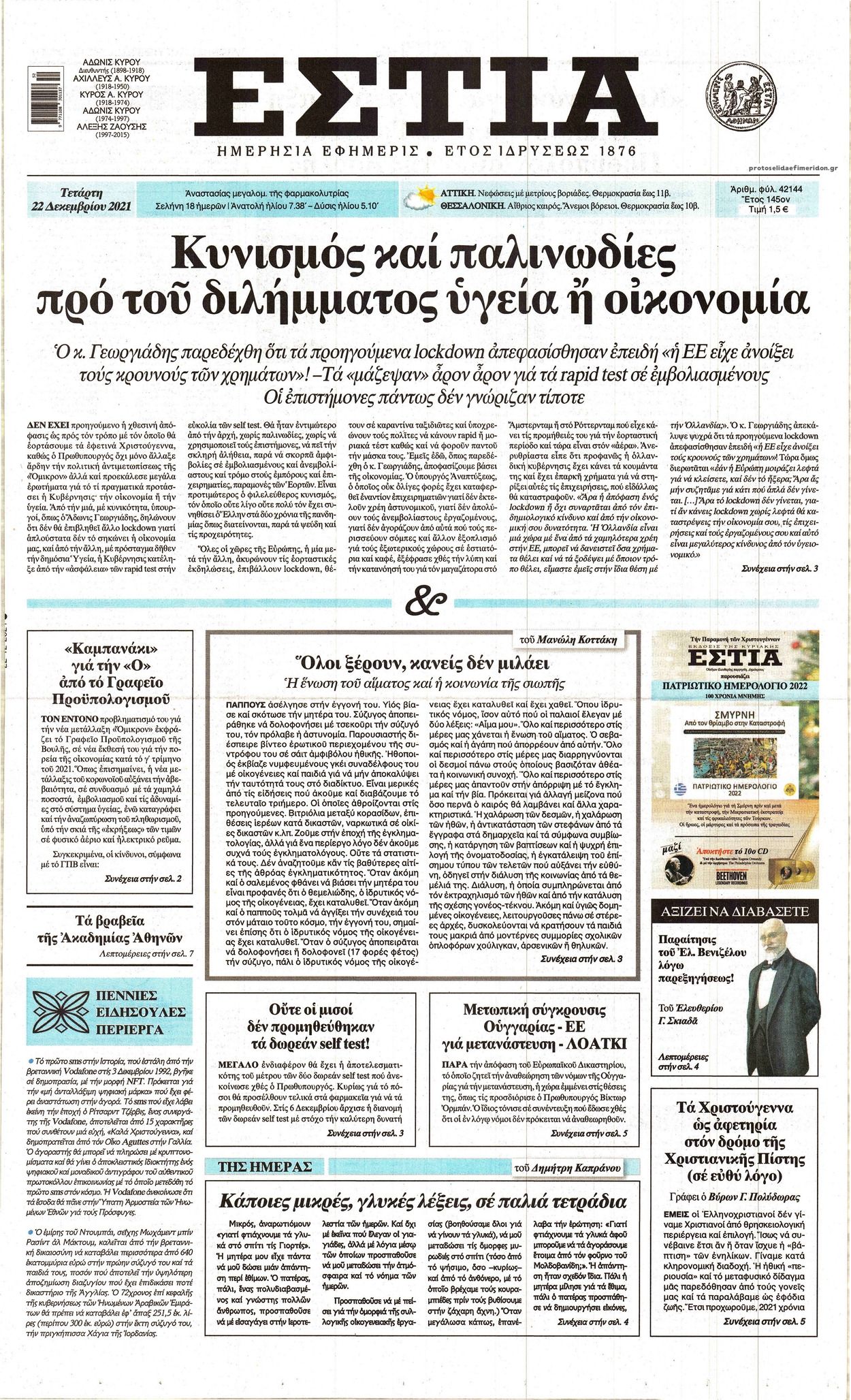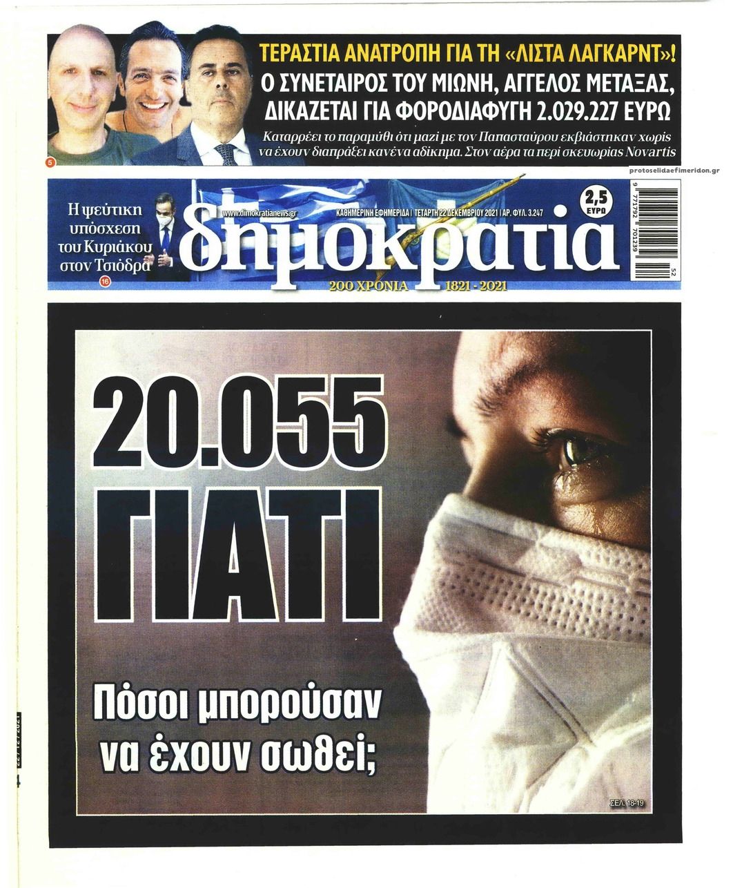 Ελλάδα Τα πρωτοσέλιδα του αθηναϊκού τύπου Δεκ 22, 2021 to kentri Twitter Facebook LinkedIn Pinterest Email Δείτε τις πρώτες σελίδες των σημερινών αθηναϊκών εφημερίδων Τα πρωτοσέλιδα του σημερινού αθηναϊκού τύπου: ΠΗΓΗ: formedia.gr ❝ ετικέτες ❞ #ΠΡΩΤΟΣΕΛΙΔΑ