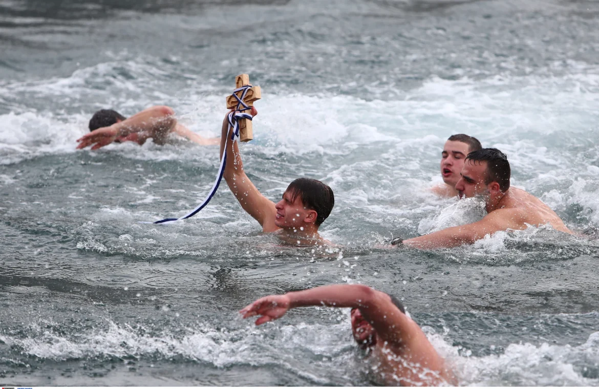 Σε πολλά Δωδεκάνησα, αλλά κυρίως στο Δ. Σύμης και στο Δ. Καλύμνου, οι βουτηχτάδες, όσοι δηλαδή βουτούν να πιάσουν το σταυρό αψηφώντας τις χαμηλές θερμοκρασίες του νερού της θάλασσας, κρατούν την ανάσα τους για να μείνουν όσο το δυνατόν περισσότερο κάτω από το κρύο νερό. Και φυσικά, όσο διαρκεί η παγωμένη βουτιά, οι ψαράδες των νησιών με τις βάρκες τους, σχηματίζουν έναν προστατευτικό κλοιό γύρω από τους βουτηχτάδες που θεωρούνται οι τυχεροί της νέας χρονιάς που μόλις μπήκε.