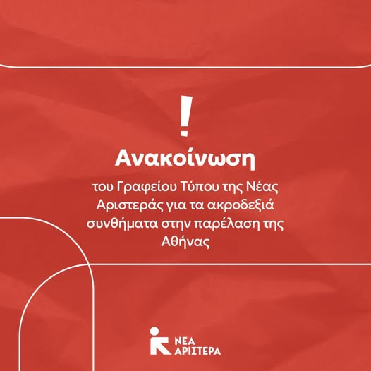 «Τα ακροδεξιά συνθήματα που ακούστηκαν στην παρέλαση της Αθήνας από άγημα του Πολεμικού Ναυτικού γυρίζουν τη χώρα πολλά χρόνια πίσω», τονίζει η Νέα Αριστερά σε ανακοίνωσή της σχετικά με συνθήματα που ακούστηκαν κατά την παρέλαση της 25ης Μαρτίου.